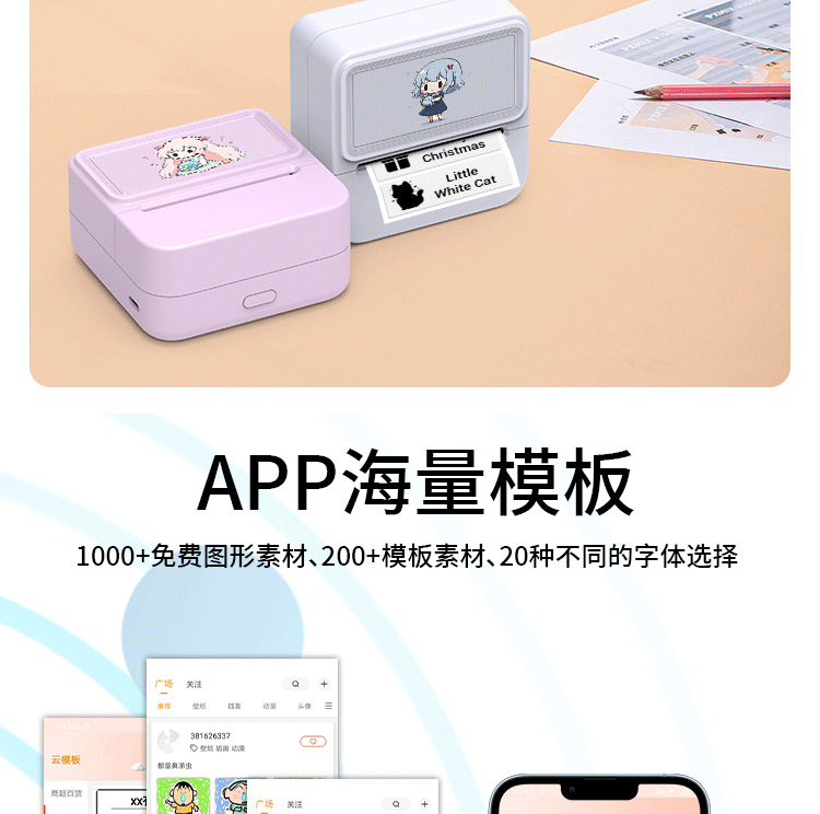 휴대용 미니 프린터 스티커 메모 사진 사진 라벨 포켓 어린이 학습 열 블루투스 홈