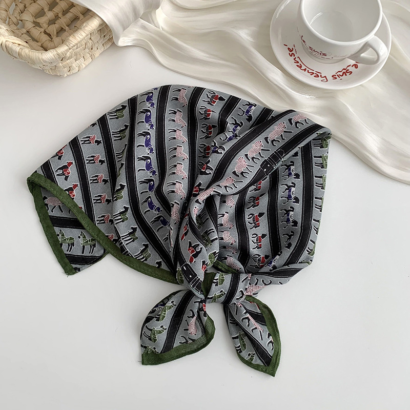 실크 스카프 목 작은 광장 스카프 여성의 새로운 목 보호 줄무늬 스카프 목도리 모든 경기 만화 얼룩말 머리 스카프 헤어 벨트 리본