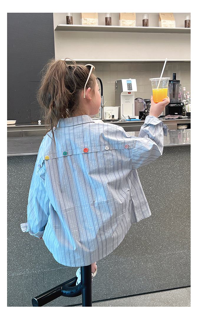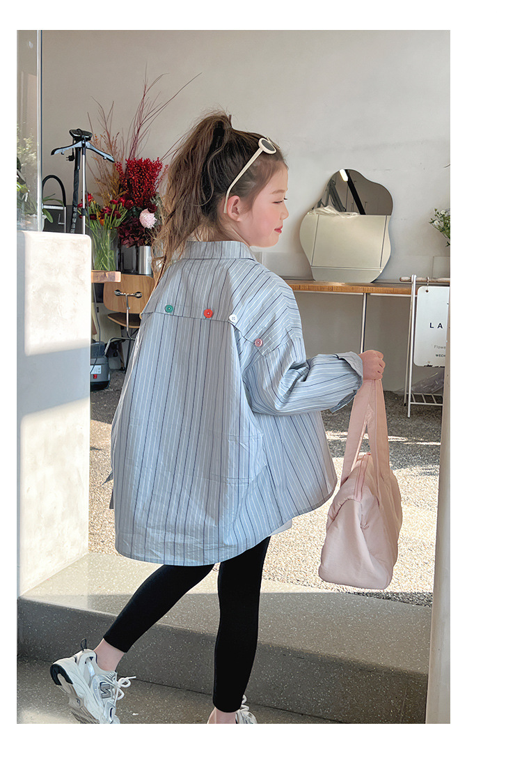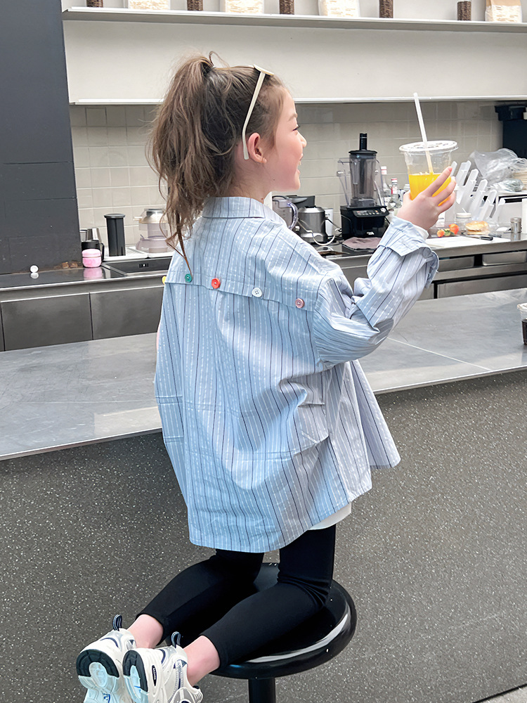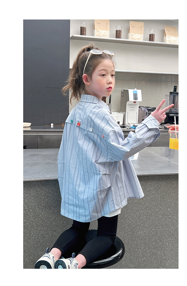 소녀 느슨한 줄무늬 셔츠 어린이 서양식 긴 소매 셔츠 큰 어린이 의류 작은 신선한 스타일 톱 2025 봄 새로운 스타일스토어 가기