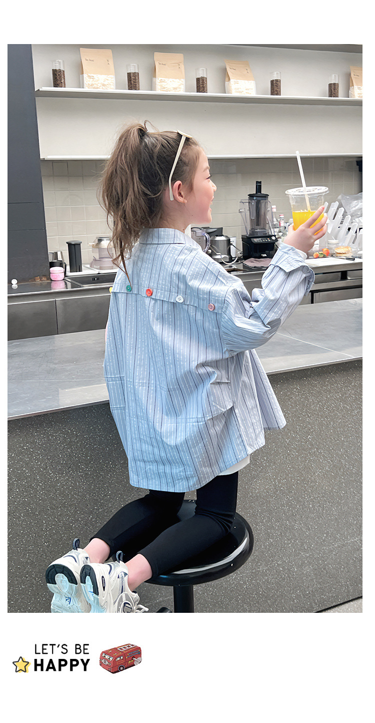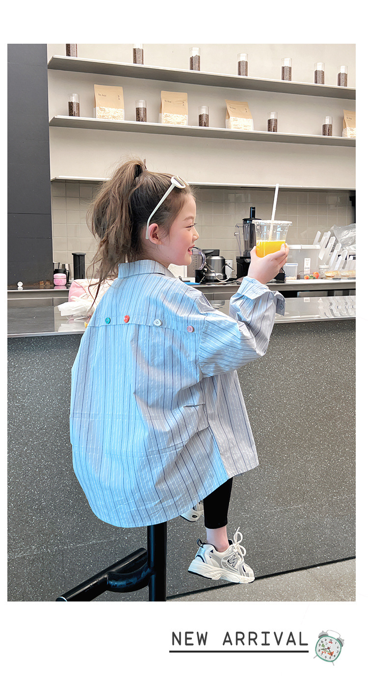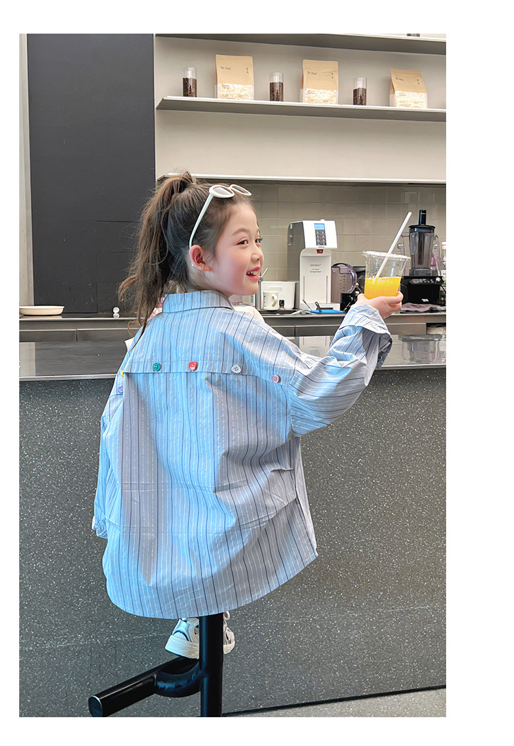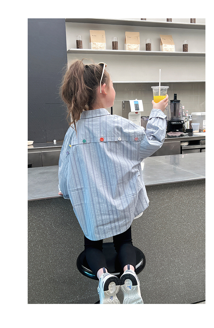 소녀 느슨한 줄무늬 셔츠 어린이 서양식 긴 소매 셔츠 큰 어린이 의류 작은 신선한 스타일 톱 2025 봄 새로운 스타일스토어 가기