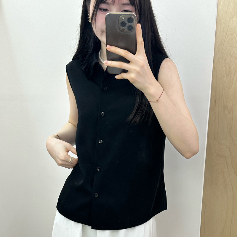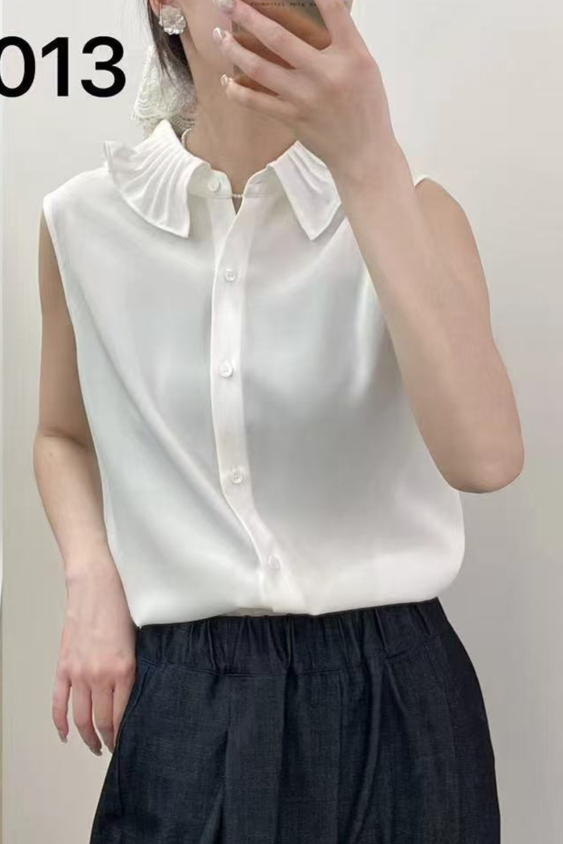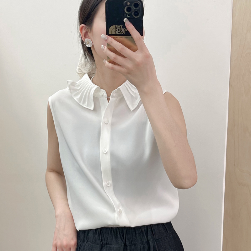 2025 여름 새로운 민소매 셔츠 여성용 레이스 칼라 디자인 센스 달콤한 조끼 셔츠 탑 013