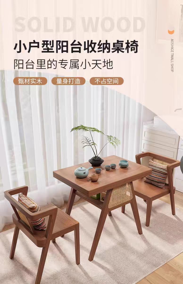 단단한 나무 발코니 작은 테이블과 의자 3 조각 조합 창조적 인 레저 의자 홈 차 작은 아파트 하나의 테이블과 두 개의 의자스토어 가기