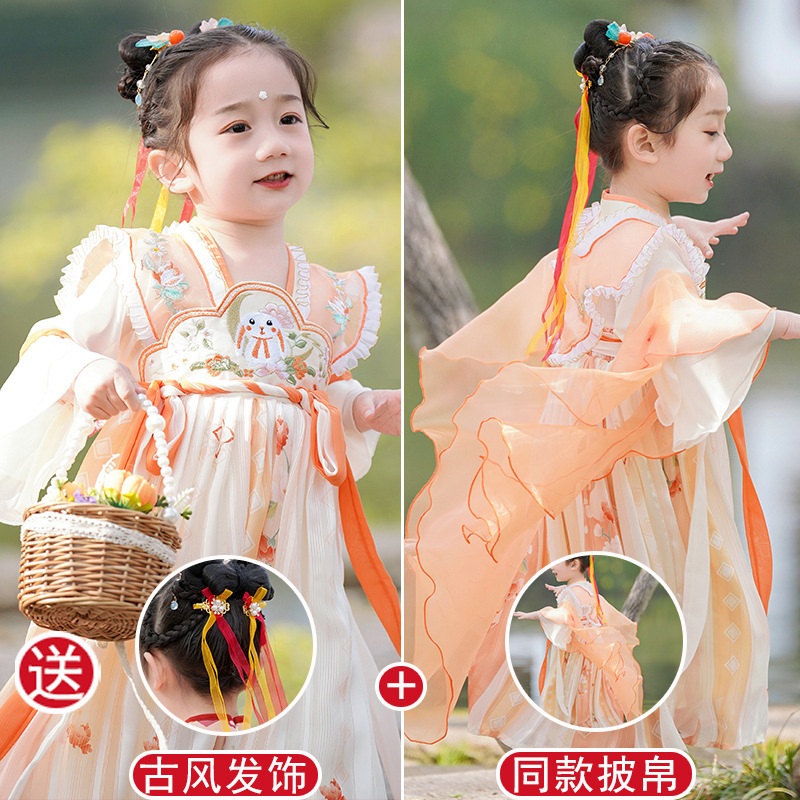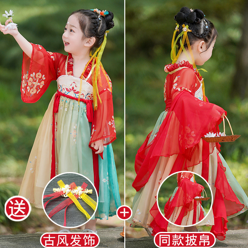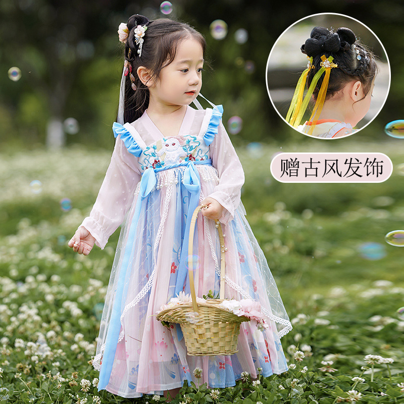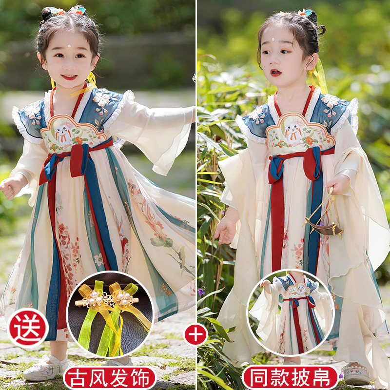 여자 Hanfu 봄 스타일 새로운 어린 소녀 중국 스타일 고대 스타일 슈퍼 요정 드레스 어린이 당나라 정장 도매스토어 가기