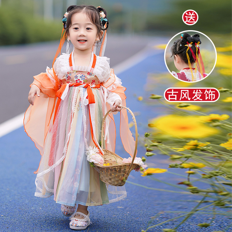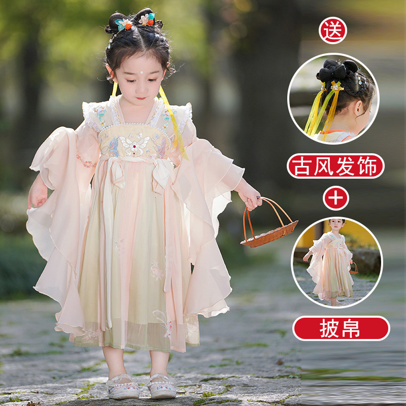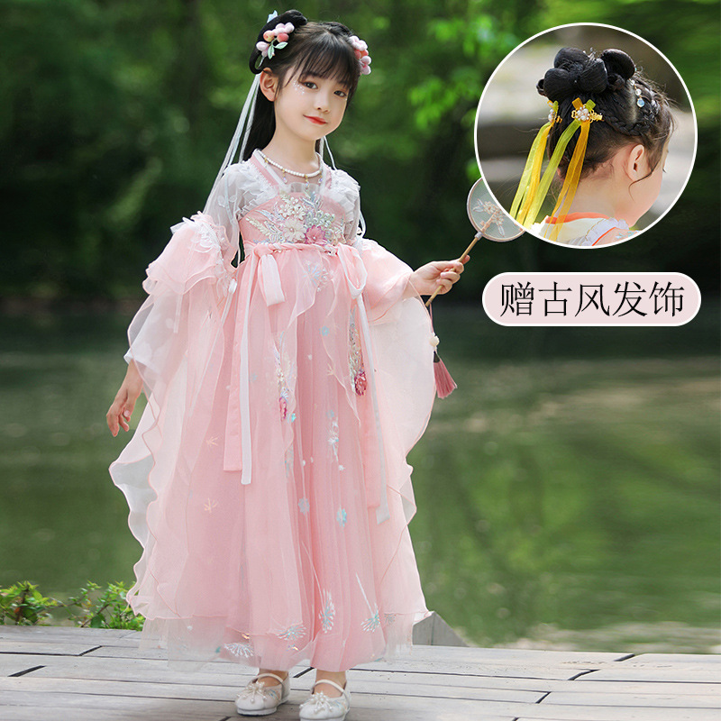 여자 Hanfu 봄 스타일 새로운 어린 소녀 중국 스타일 고대 스타일 슈퍼 요정 드레스 어린이 당나라 정장 도매