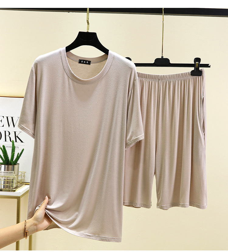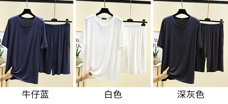 남성용 반팔 홈웨어 세트 여름 얇은 모달 반팔 탑 반바지 투피스 캐주얼 대형 잠옷스토어 가기