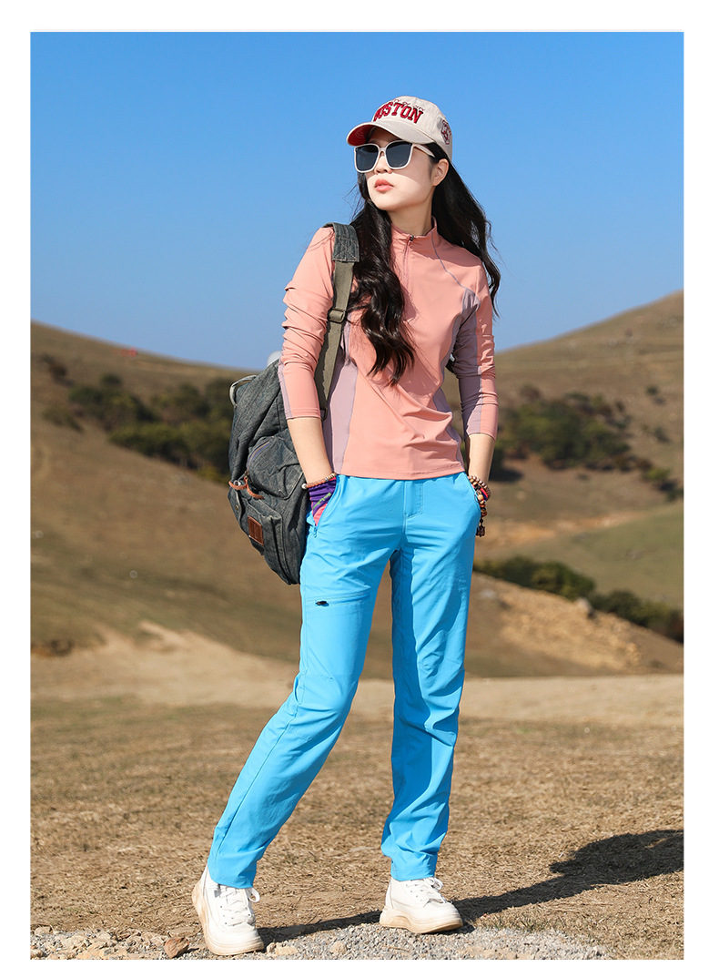 여성용 야외 얇은 탄성 속건성 바지, 땀 흡수성, 통기성, 슬리밍, 하이킹 및 등산, 여름용 여성용 속건성 바지스토어 가기