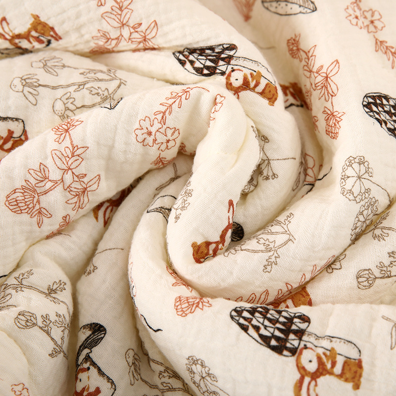 里层和外层都是双层纯棉皱布 夹层是丝绵 里外全不含荧光剂