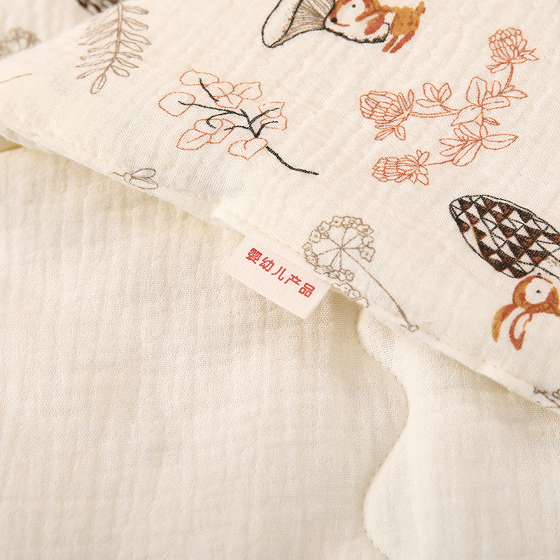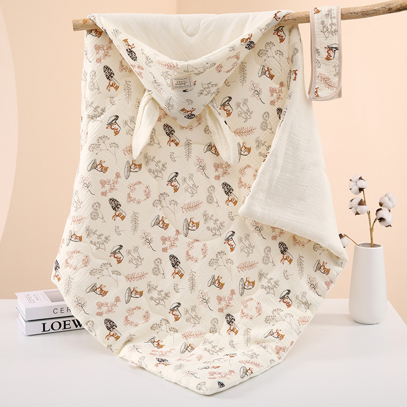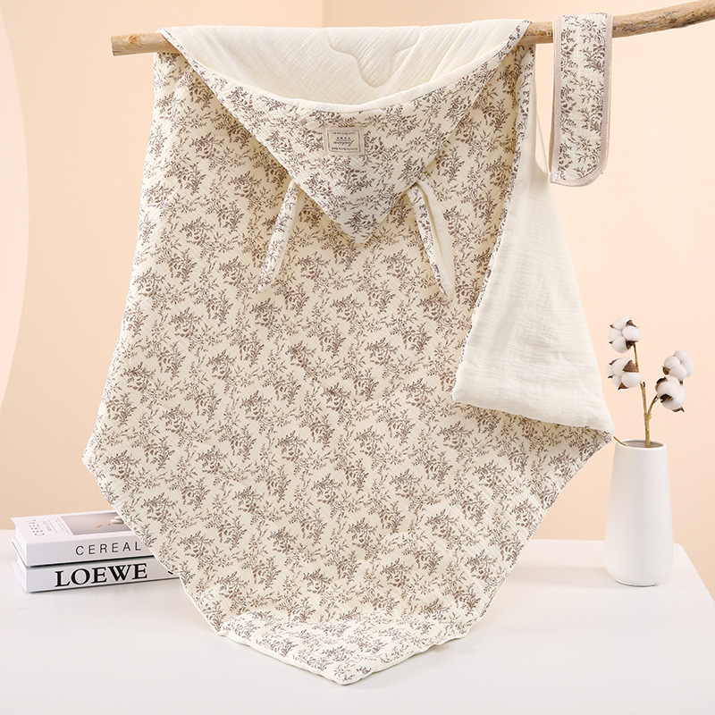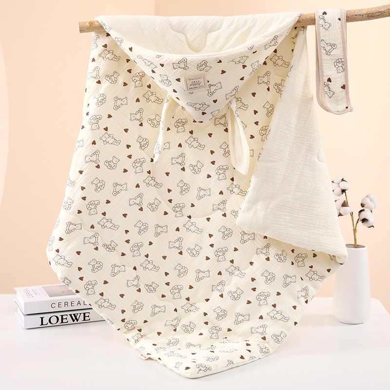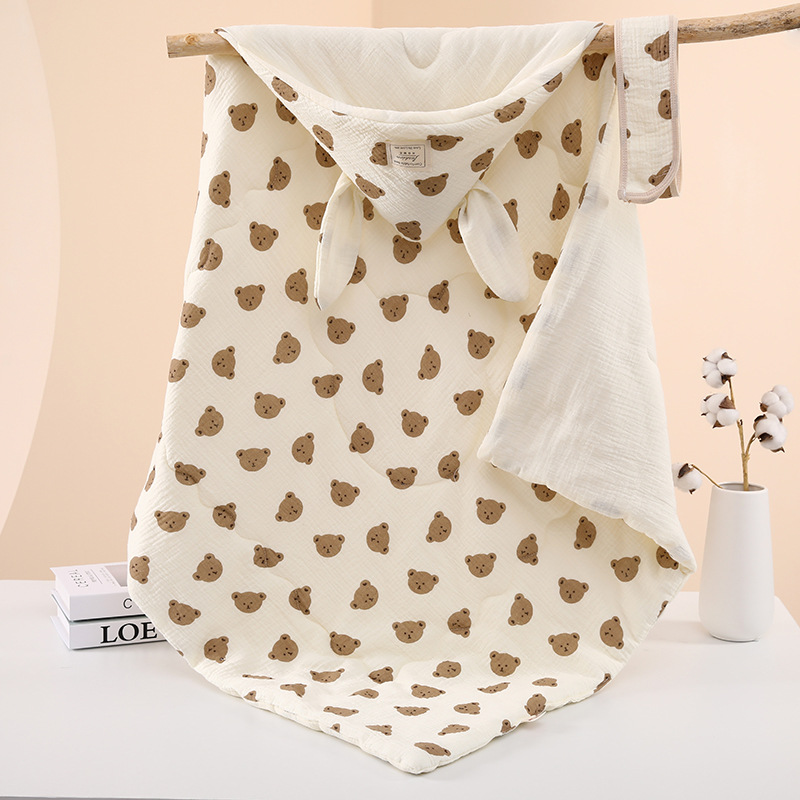 生儿绉布夹棉包被 初生四季抱被a类产房兔耳朵加棉抱被纯棉a类