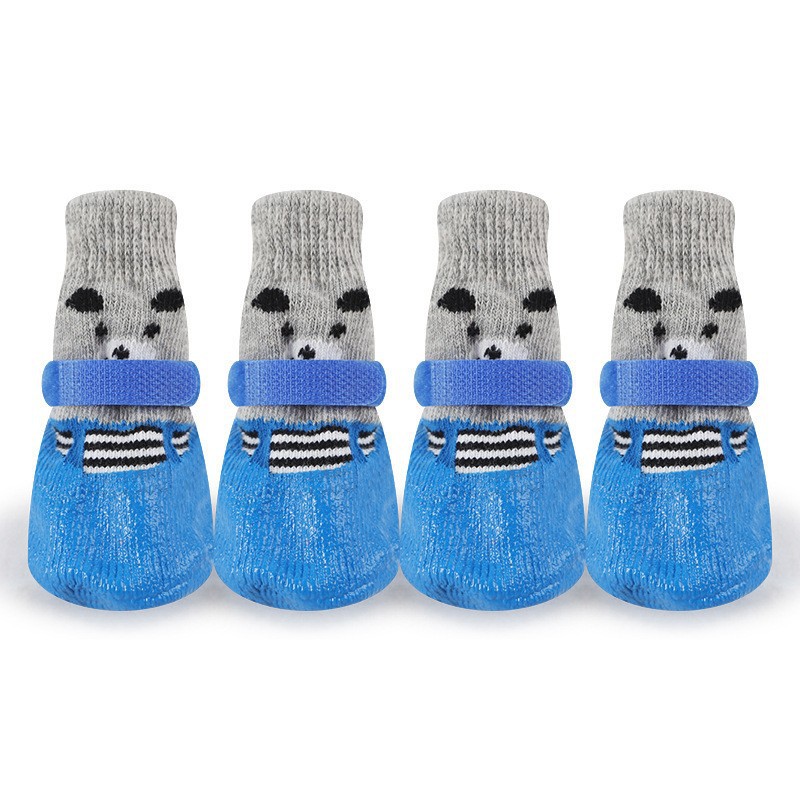 가을 겨울용 소형견 테디 신발 커버 니트 플라스틱 강아지 신발 양말 부드럽고 편안한 방수 미끄럼 방지 귀여운 애완동물용스토어 가기