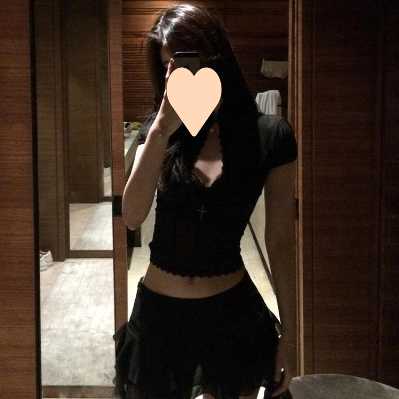 순수한 뜨거운 소녀 스타일 섹시한 메쉬 레이스 셔츠 여성의 여름 디자인 감각 버블 슬리브 새로운 중국 짧은 탑스토어 가기