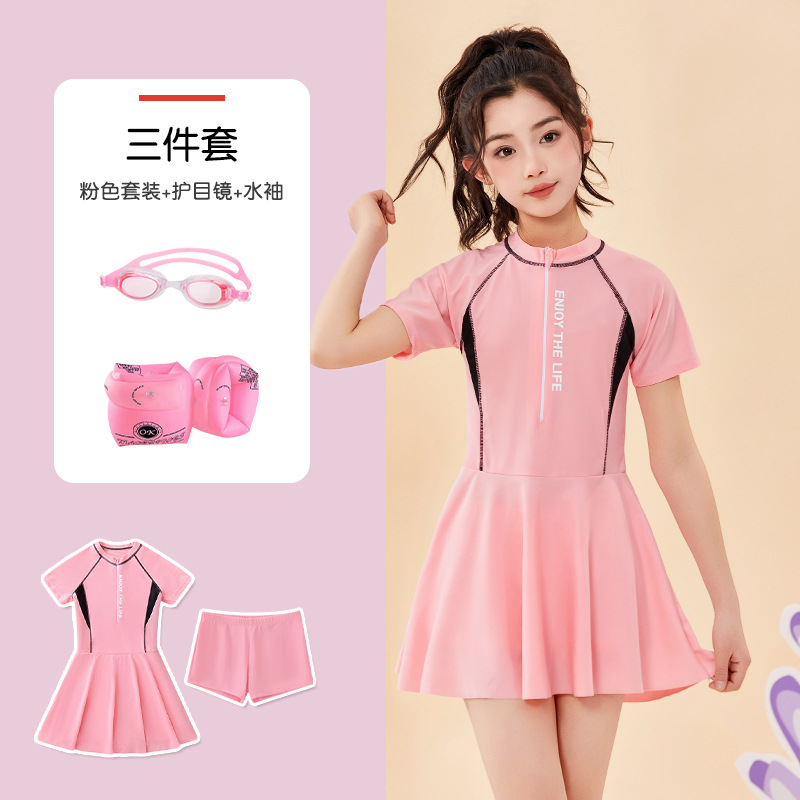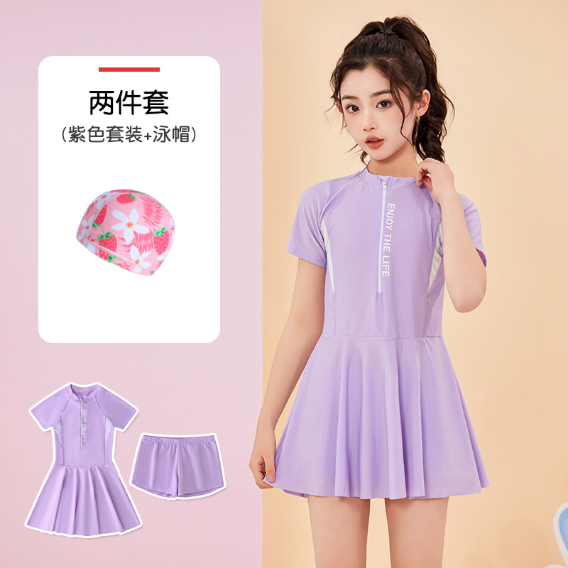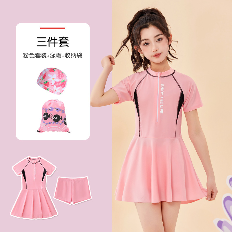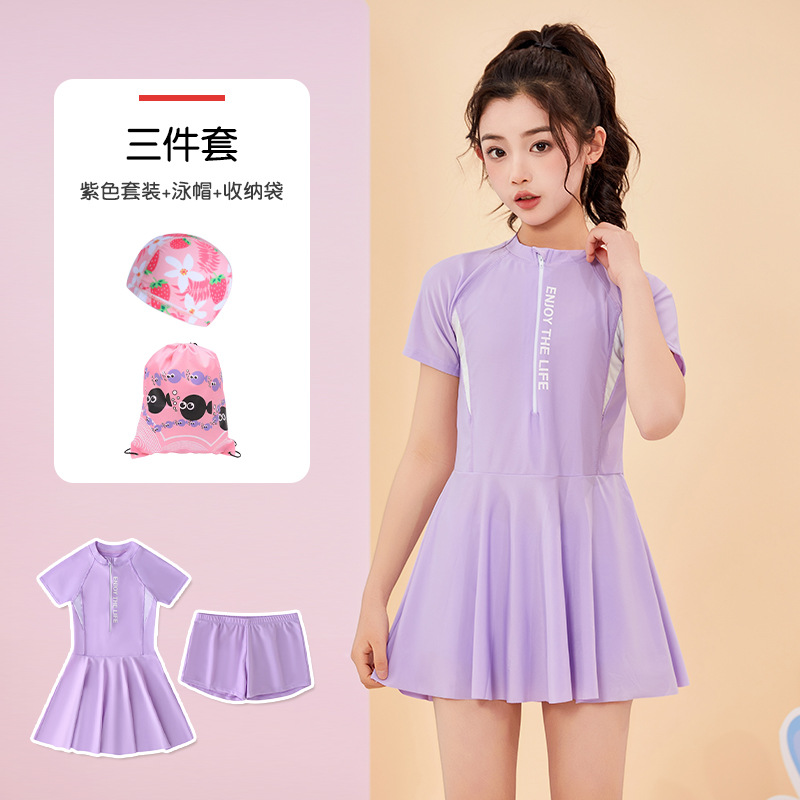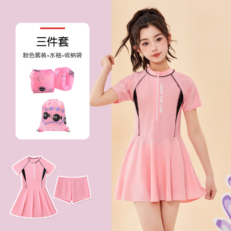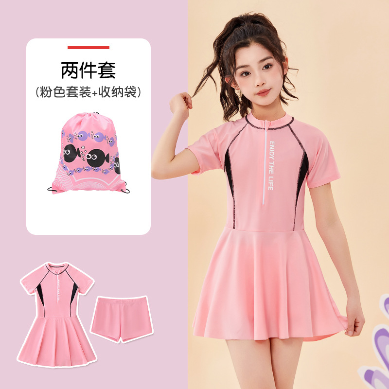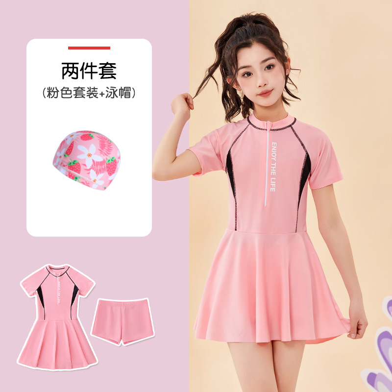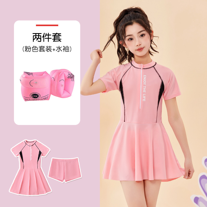 어린이 수영복 여름 새 소녀의 태양 보호 분할 편안한 보수 중 · 대형 어린이 스커트 여자 수영복 세트