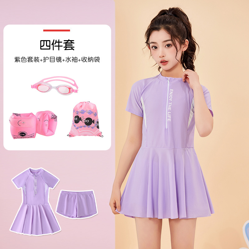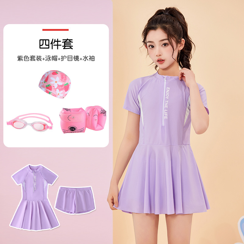 • 보라색 [수영복, 수영모, 고글, 워터슬리브] 4종세트