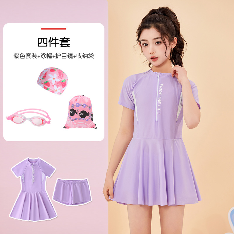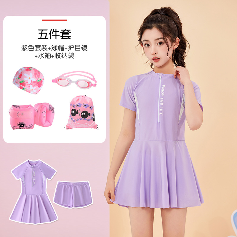어린이 수영복 여름 새 소녀의 태양 보호 분할 편안한 보수 중 · 대형 어린이 스커트 여자 수영복 세트스토어 가기