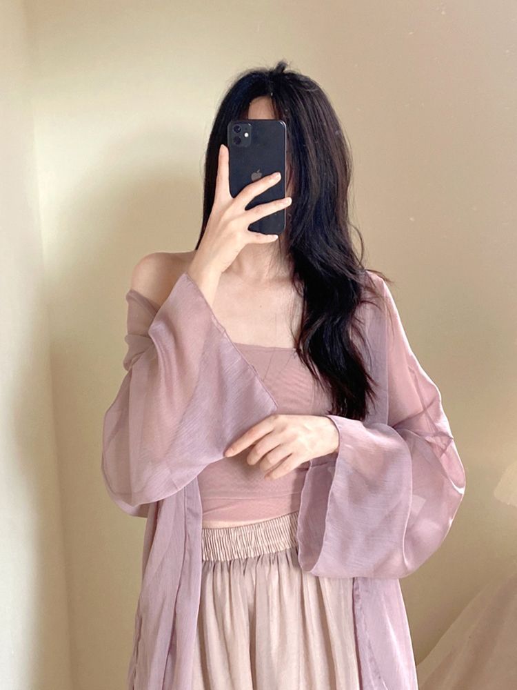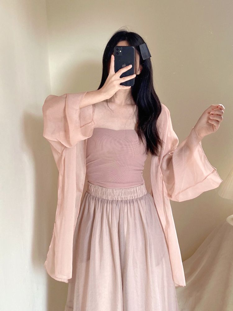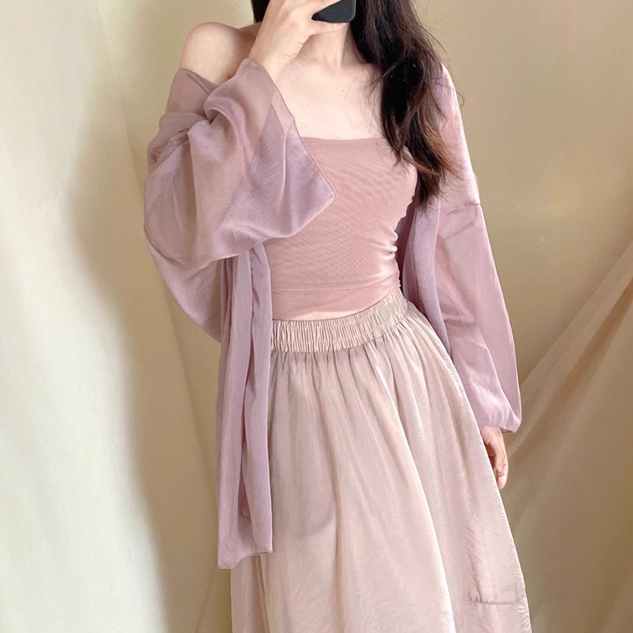 패션 쉬폰 선스크린 카디건 여성 여름 슬링 스커트 경량 통기성 작은 목도리 탑 에어컨 블라우스 재킷