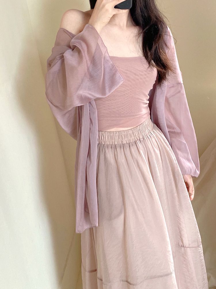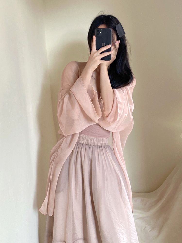 패션 쉬폰 선스크린 카디건 여성 여름 슬링 스커트 경량 통기성 작은 목도리 탑 에어컨 블라우스 재킷스토어 가기