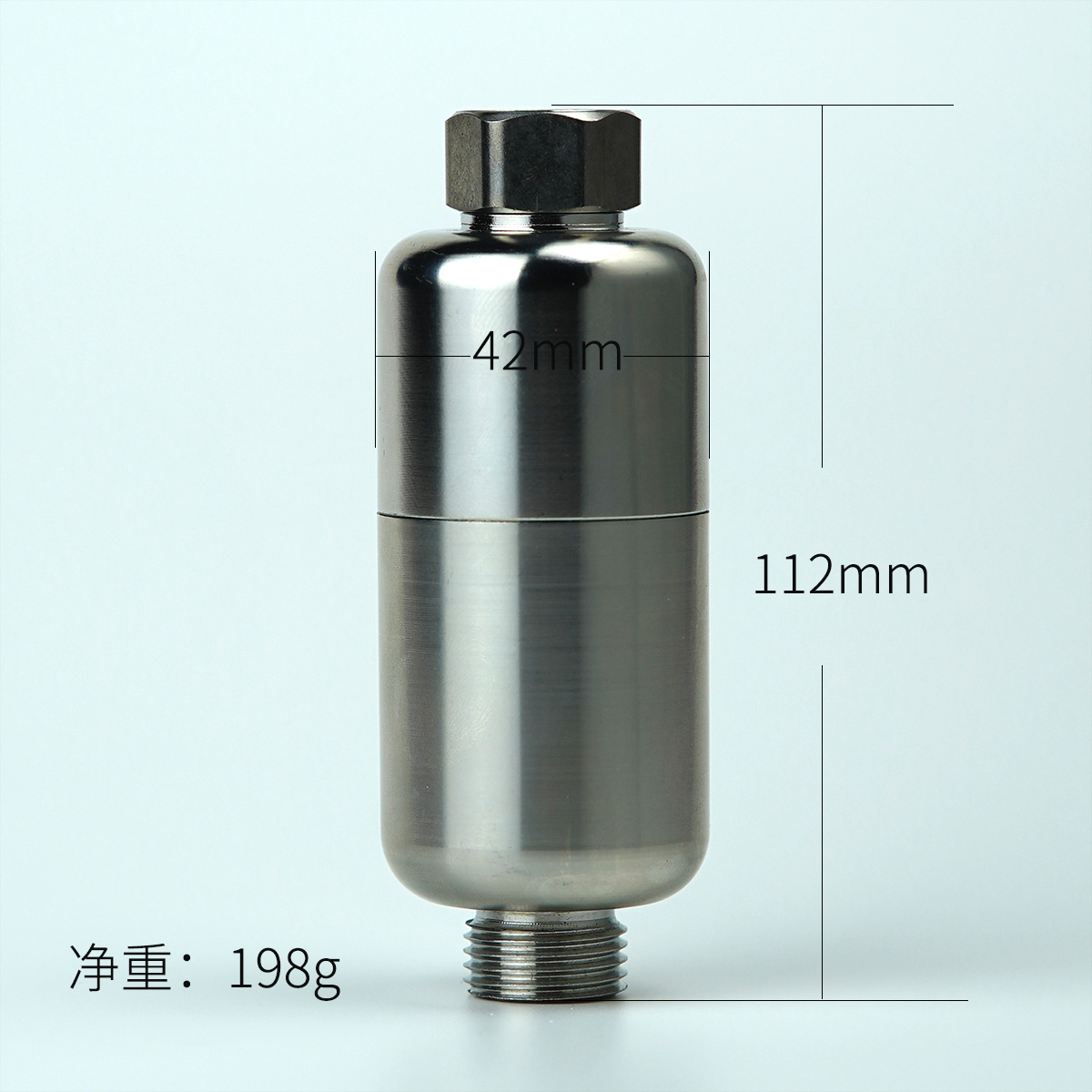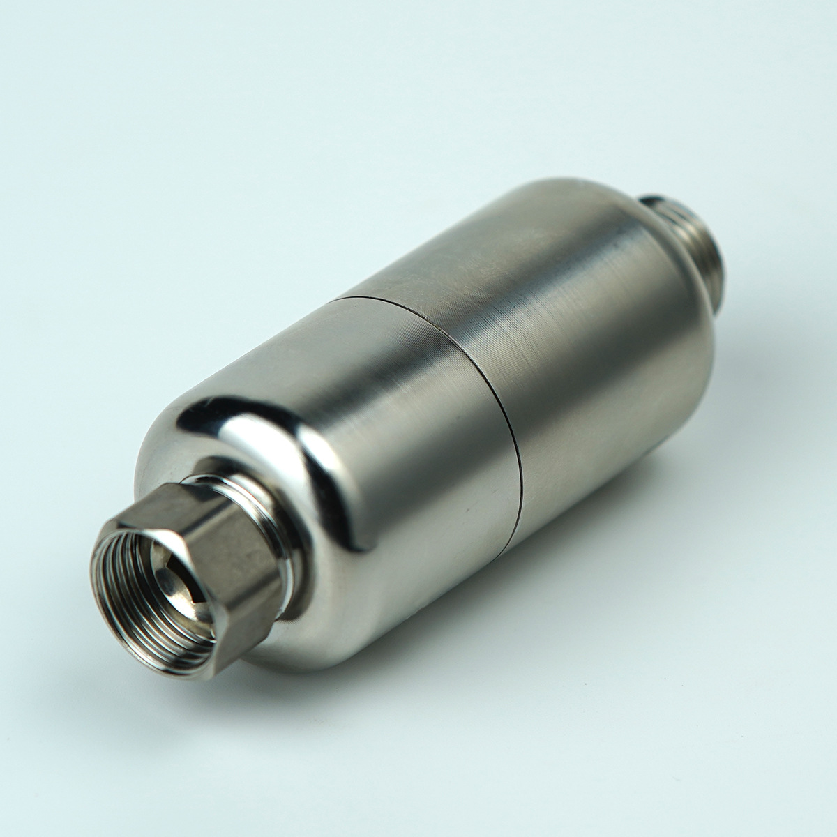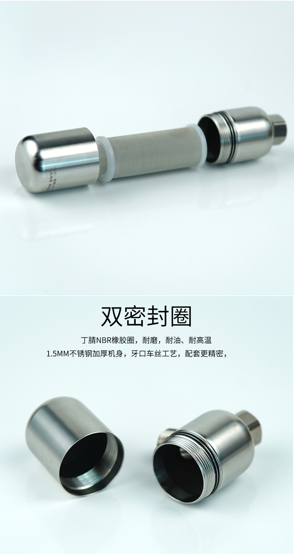 食品级304不锈钢外壳,主体一体拉伸工艺,承压更强,4分活接配四分外丝,适用市场上各种设备,匹配热水器、花洒、马桶,洗衣机,洗碗机等用水设备,内置100目精度的不锈钢滤网,可以装树脂、阻垢FOF,抑菌滤料,碱性材料,香氛材料等