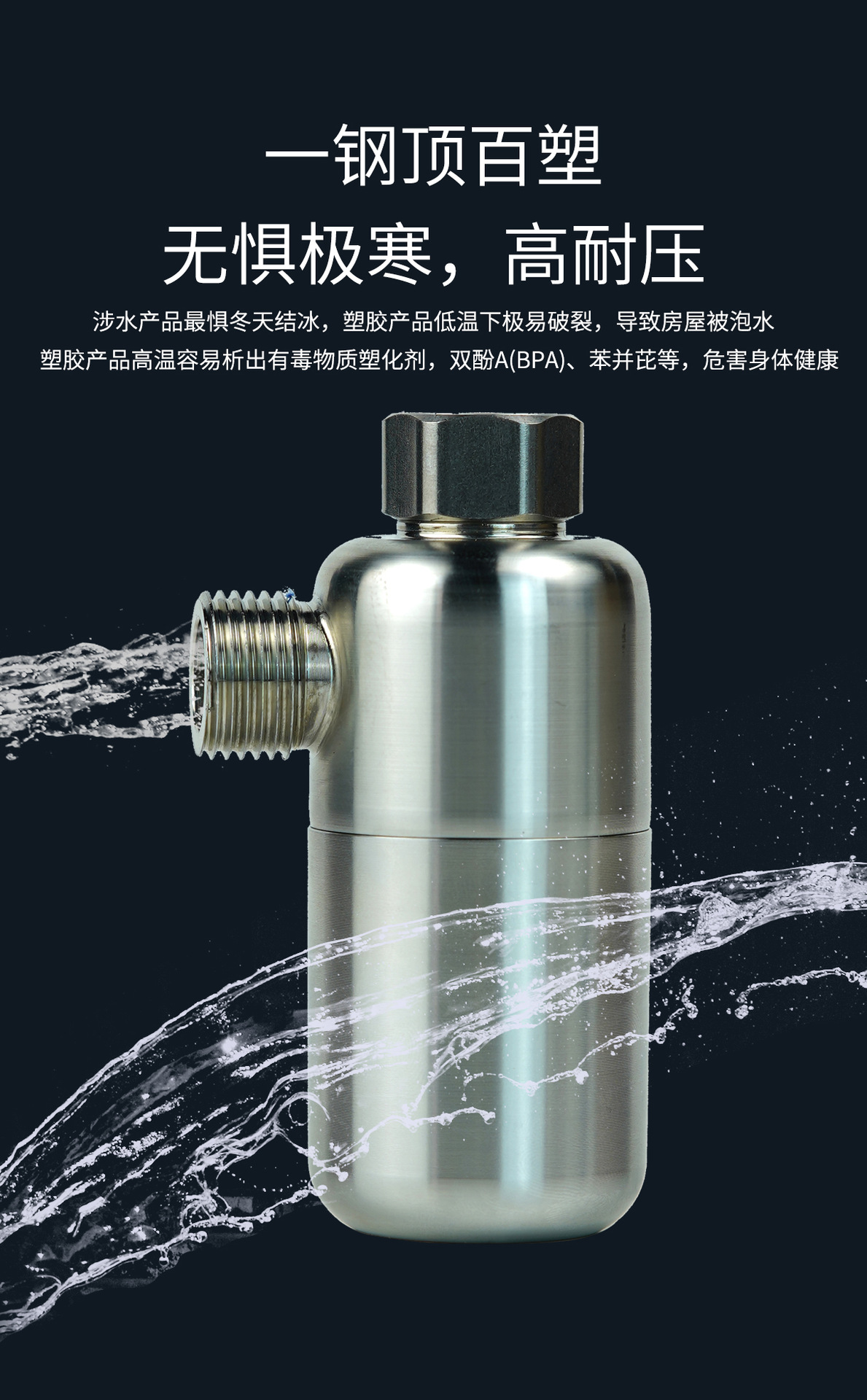 整箱50台,整箱批发更划算,联系客服,有折扣,食品级304不锈钢外壳,主体一体拉伸工艺,承压更强,4分活接配四分外丝,适用市场上各种设备,匹配热水器、花洒、马桶,洗衣机,洗碗机等用水设备,内置100目精度的不锈钢滤网,可以装树脂、阻垢FOF,抑菌滤料,碱性材料,香氛材料等