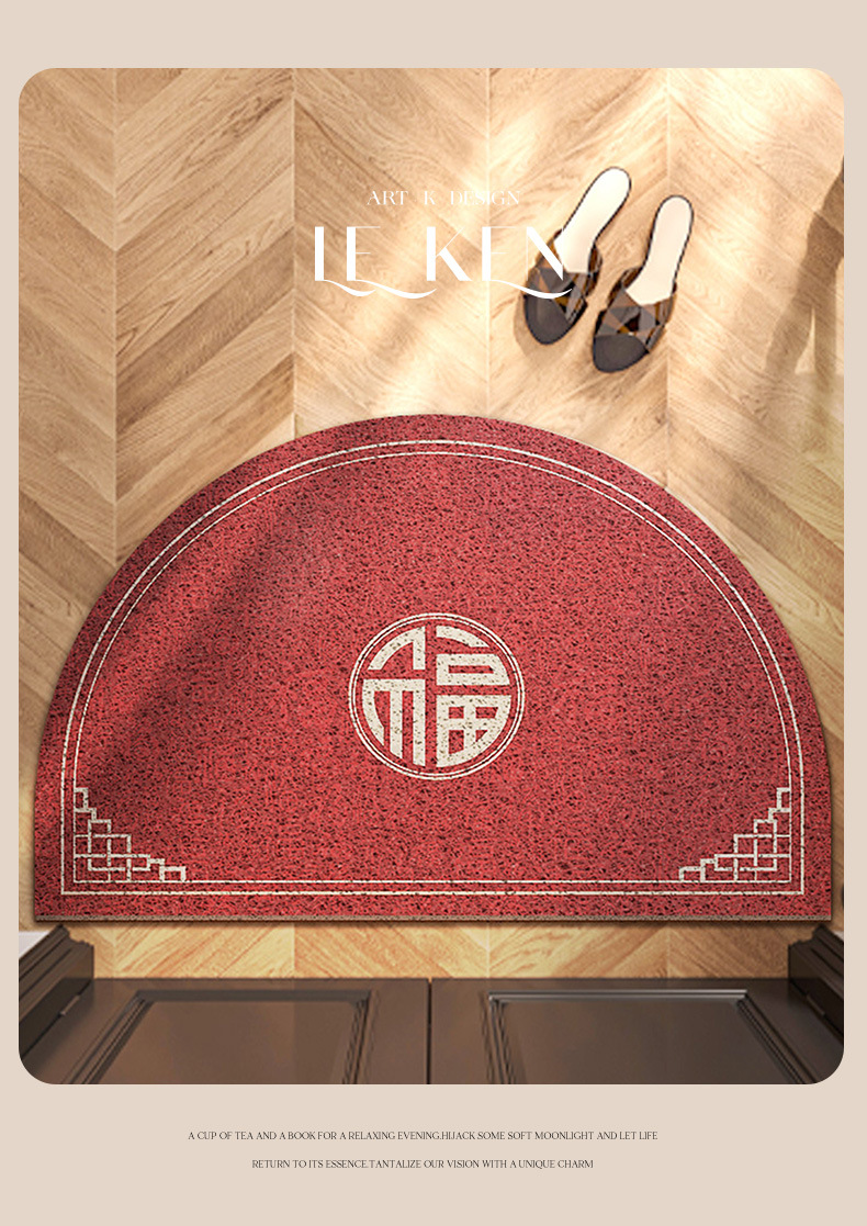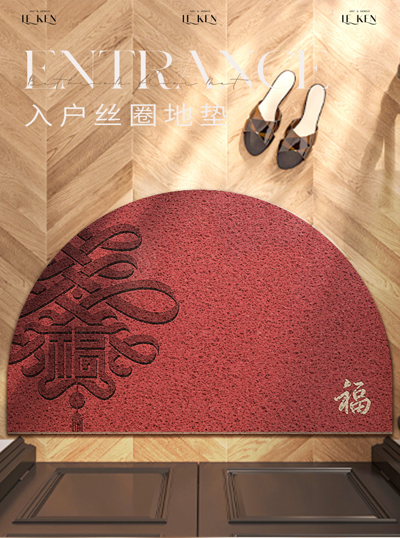 入户门地垫半圆红色新年乔迁地毯大门口丝圈脚垫门外家用进门门垫