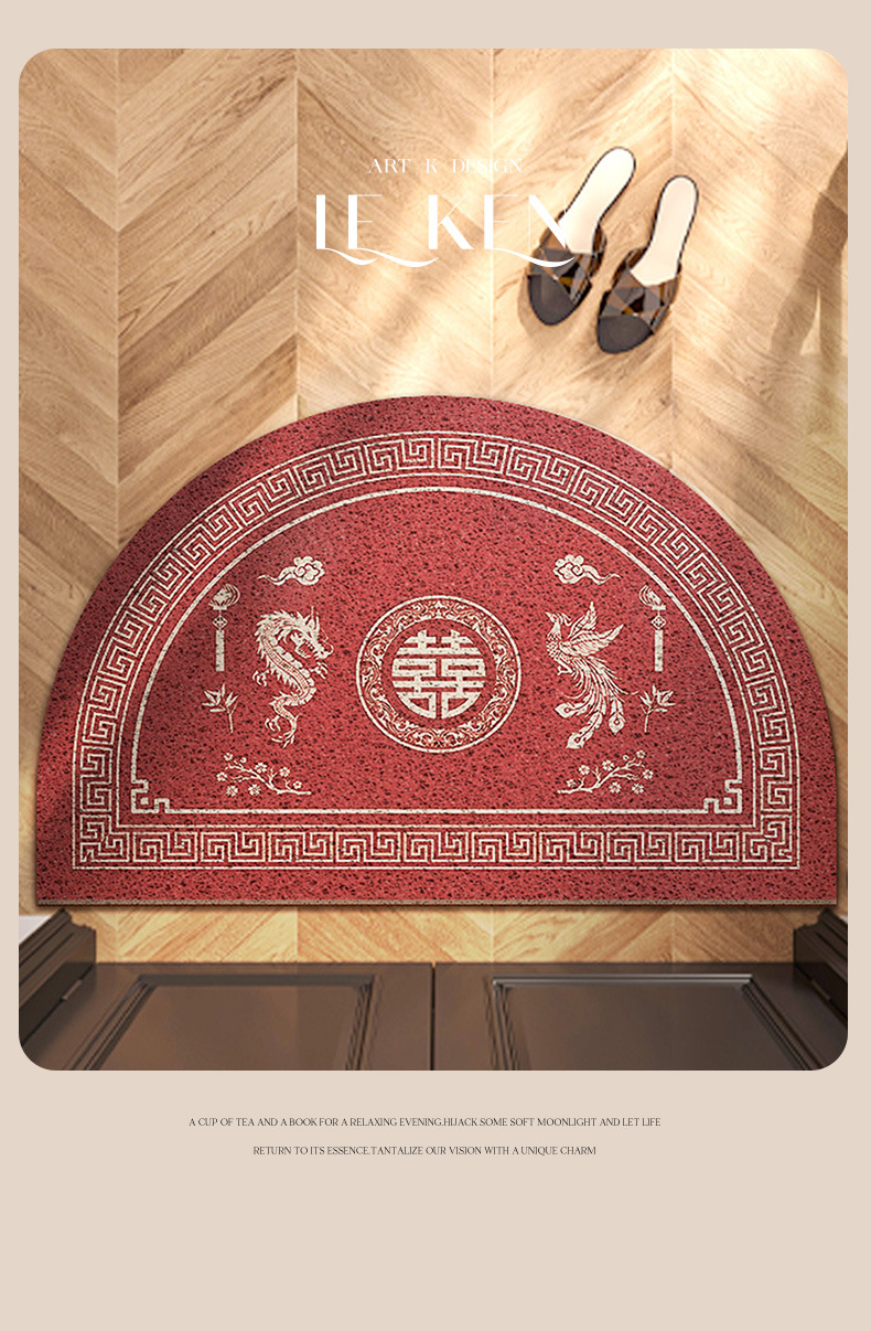 입구 문 매트 반라운드 붉은 새해 집들이 카펫 입구 실크 서클 발 매트 집 입구 문 매트 외부