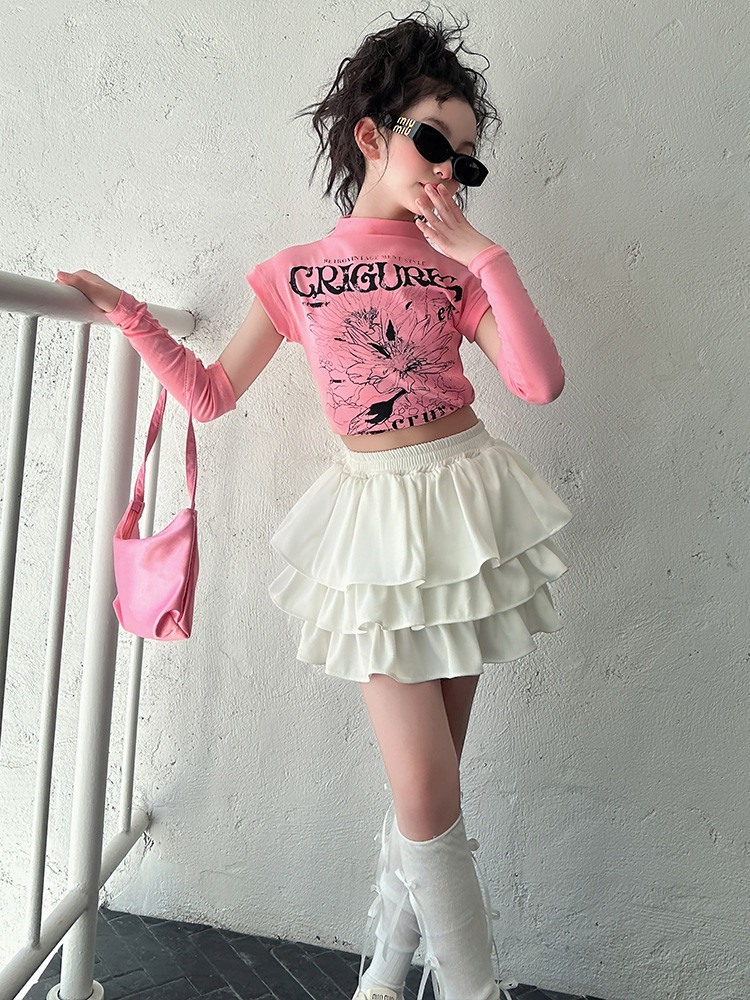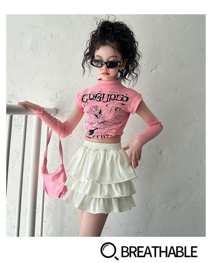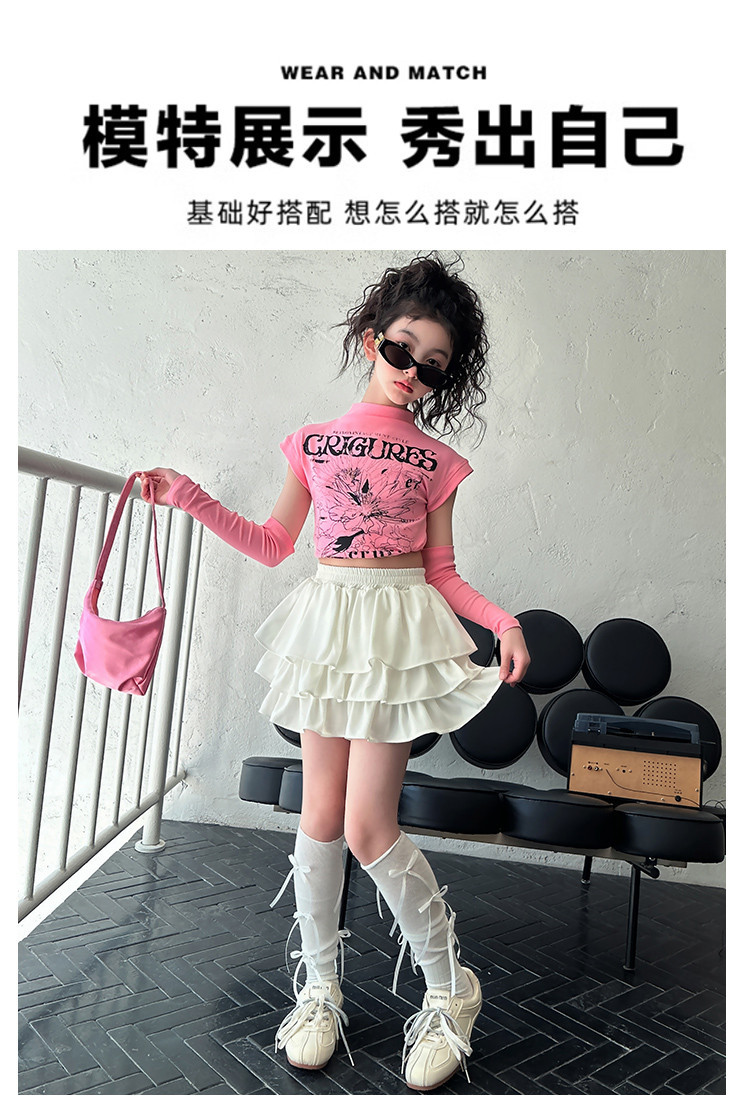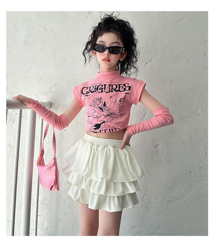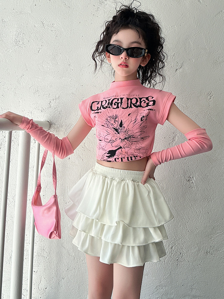 2025 국경 아동복 여름 달콤한 쿨 소녀의 반팔 티셔츠 눈부심 방지 스커트 여성 그룹 공연 의류 세트 조수스토어 가기