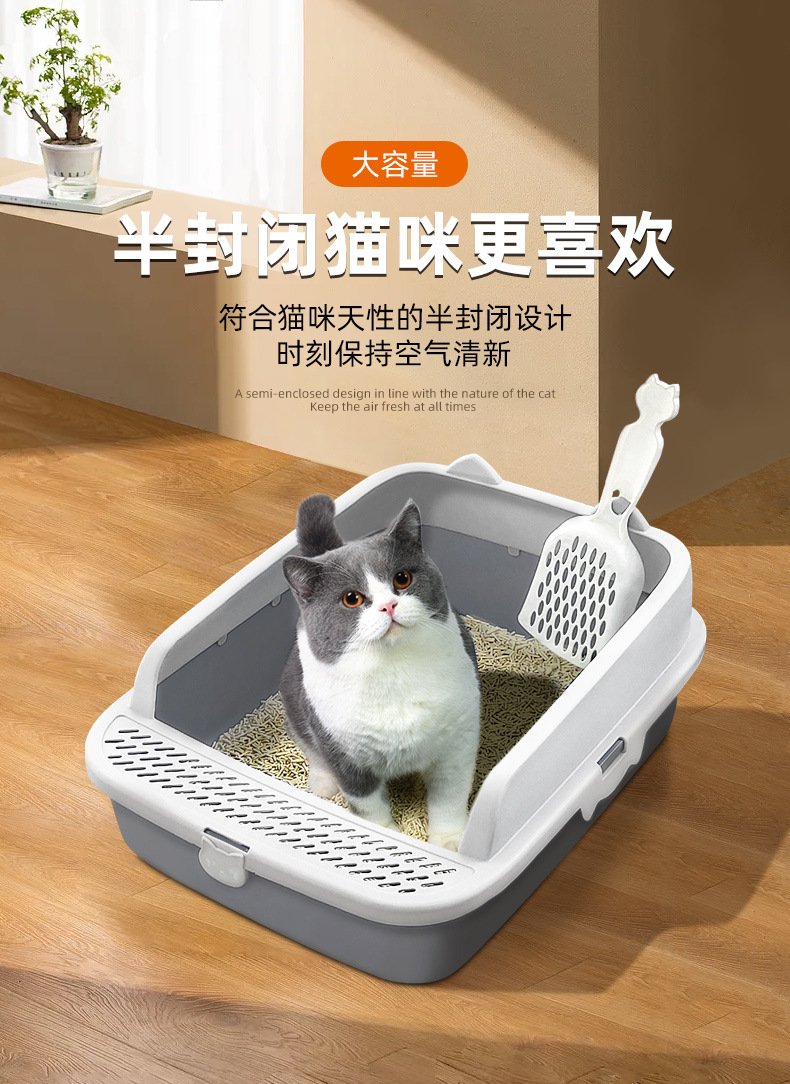 고양이 쓰레기통, 초대형 반밀폐형 고양이 화장실, 새끼 고양이 용품, 케이지 고양이 쓰레기통, 고양이 물튀김 방지