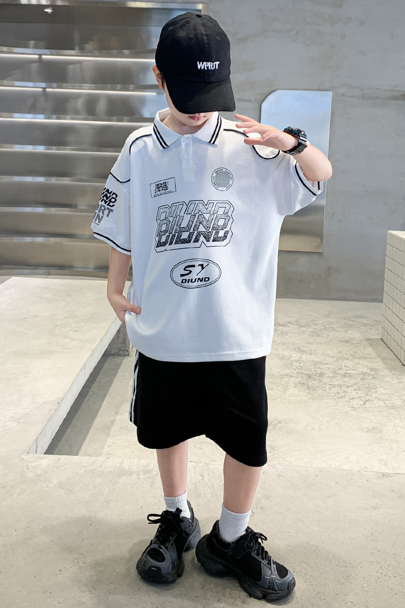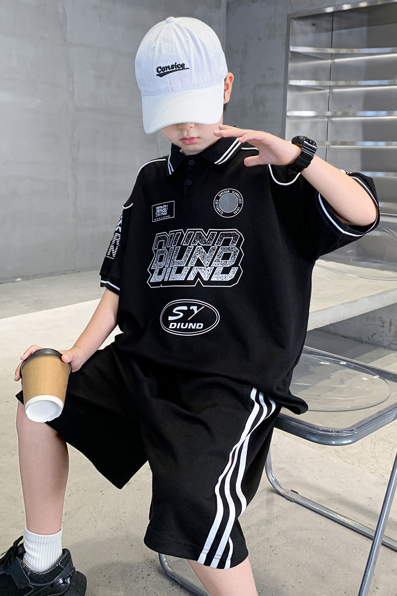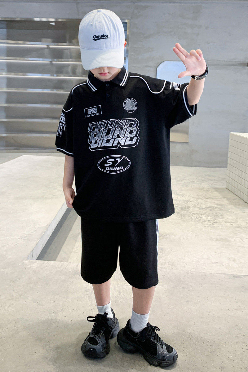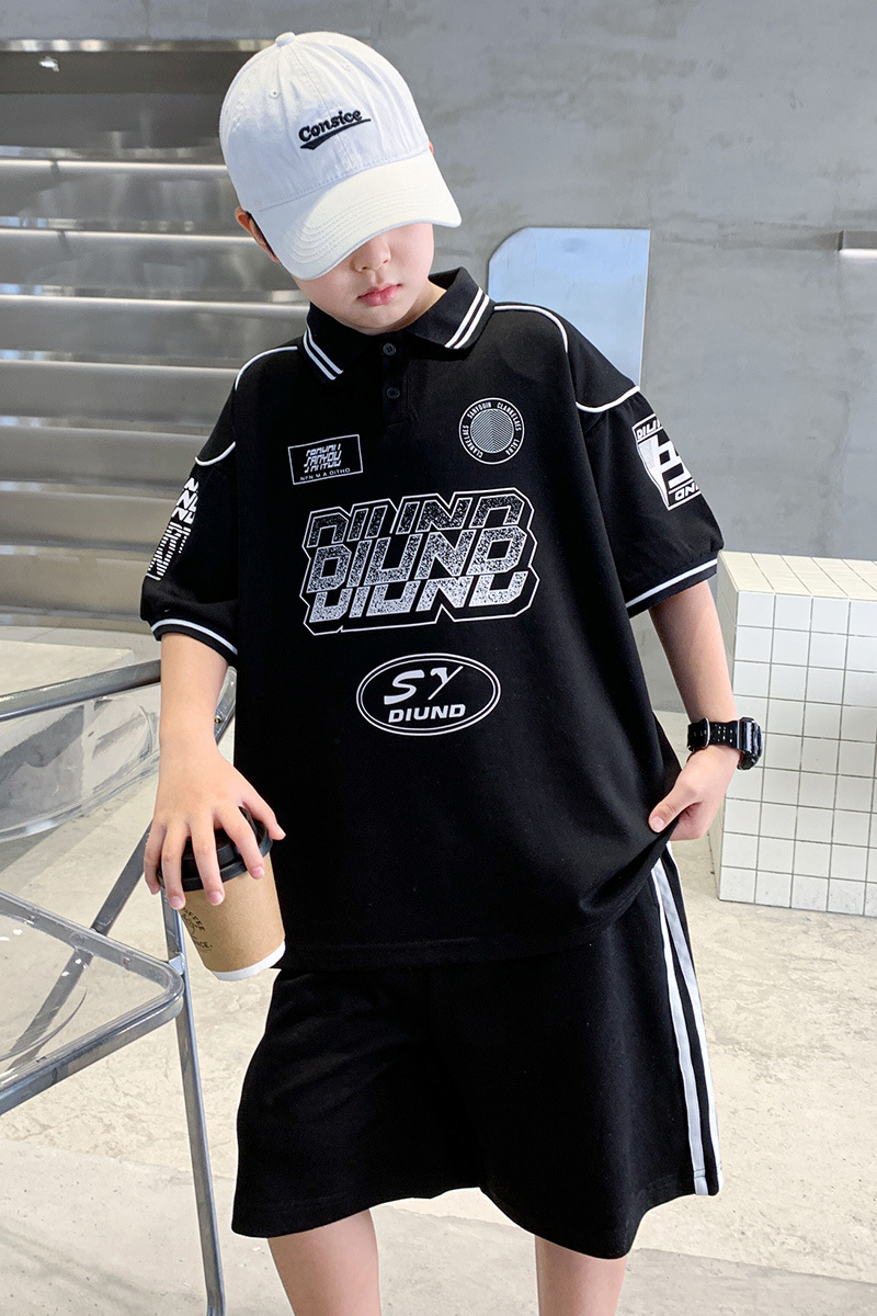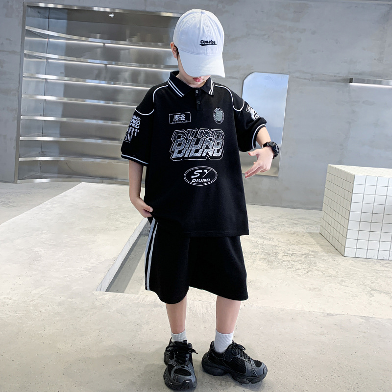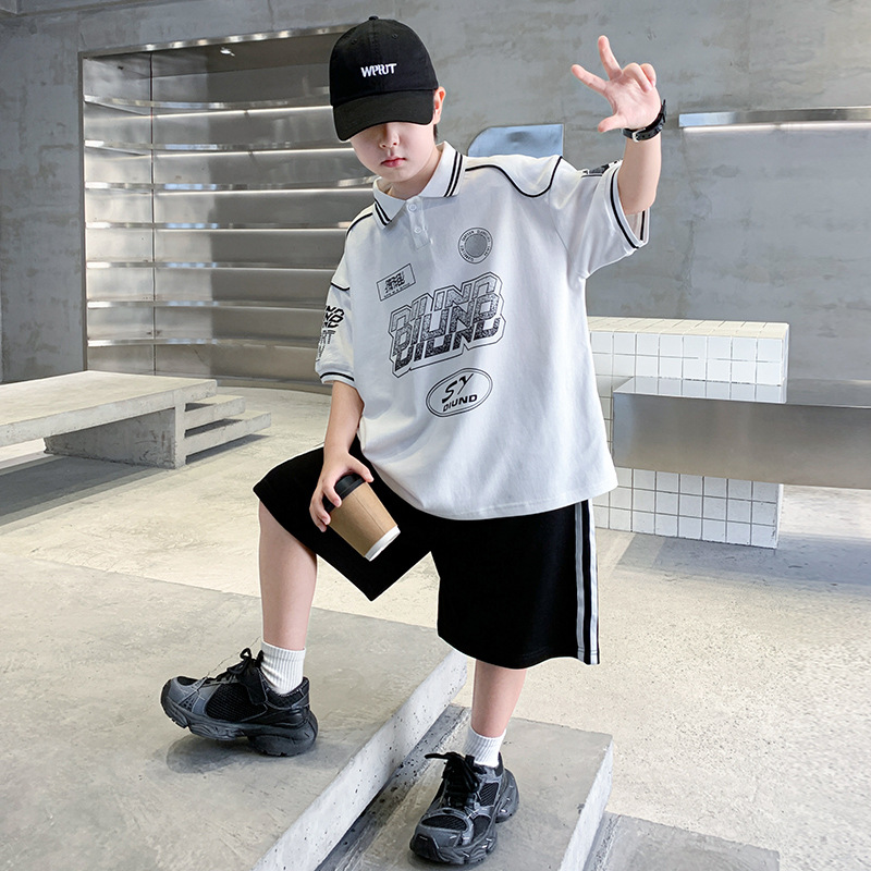 소년 패션 폴로 셔츠 여름 반팔 정장 큰 어린이 한국 스타일 캐주얼 운동복 소년 잘 생긴 투피스 세트