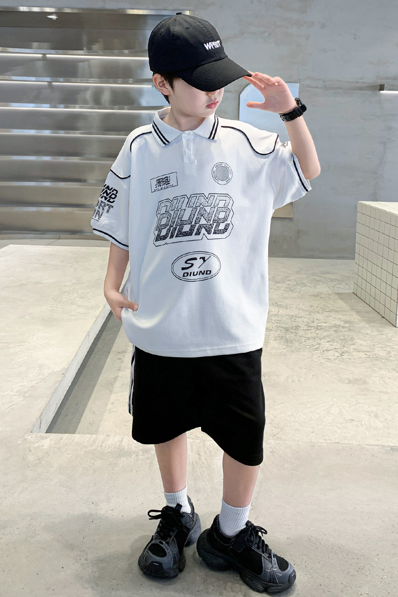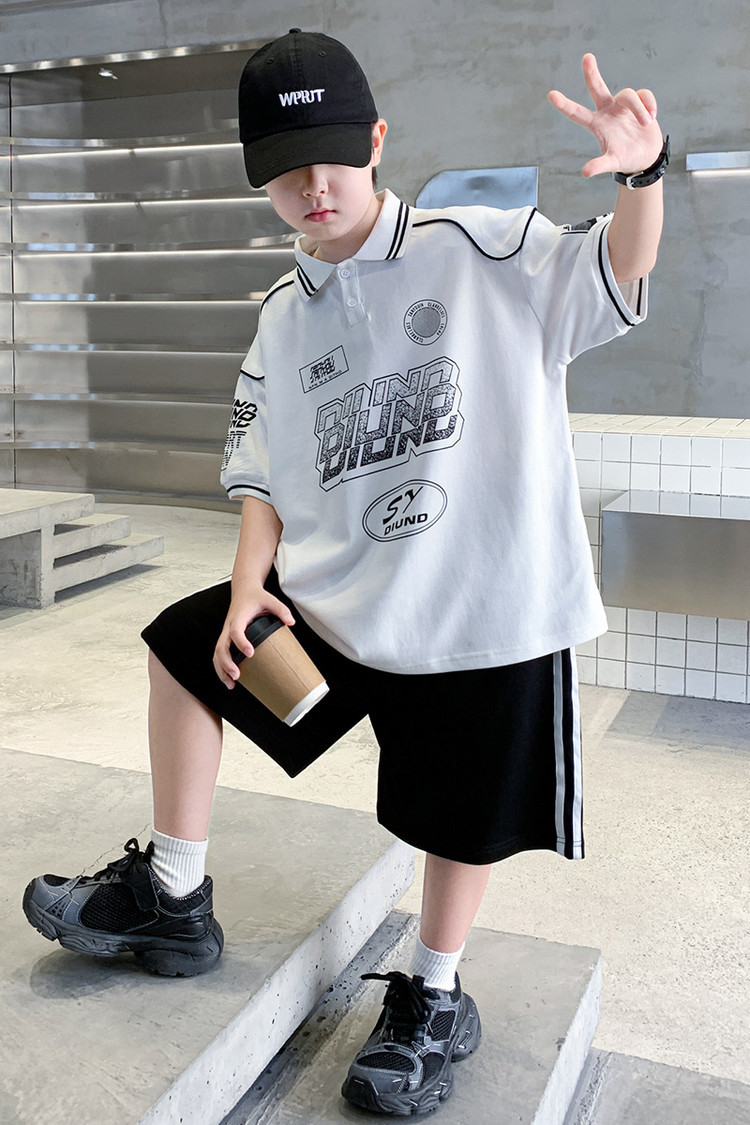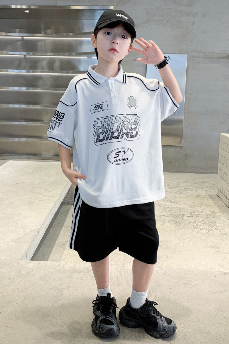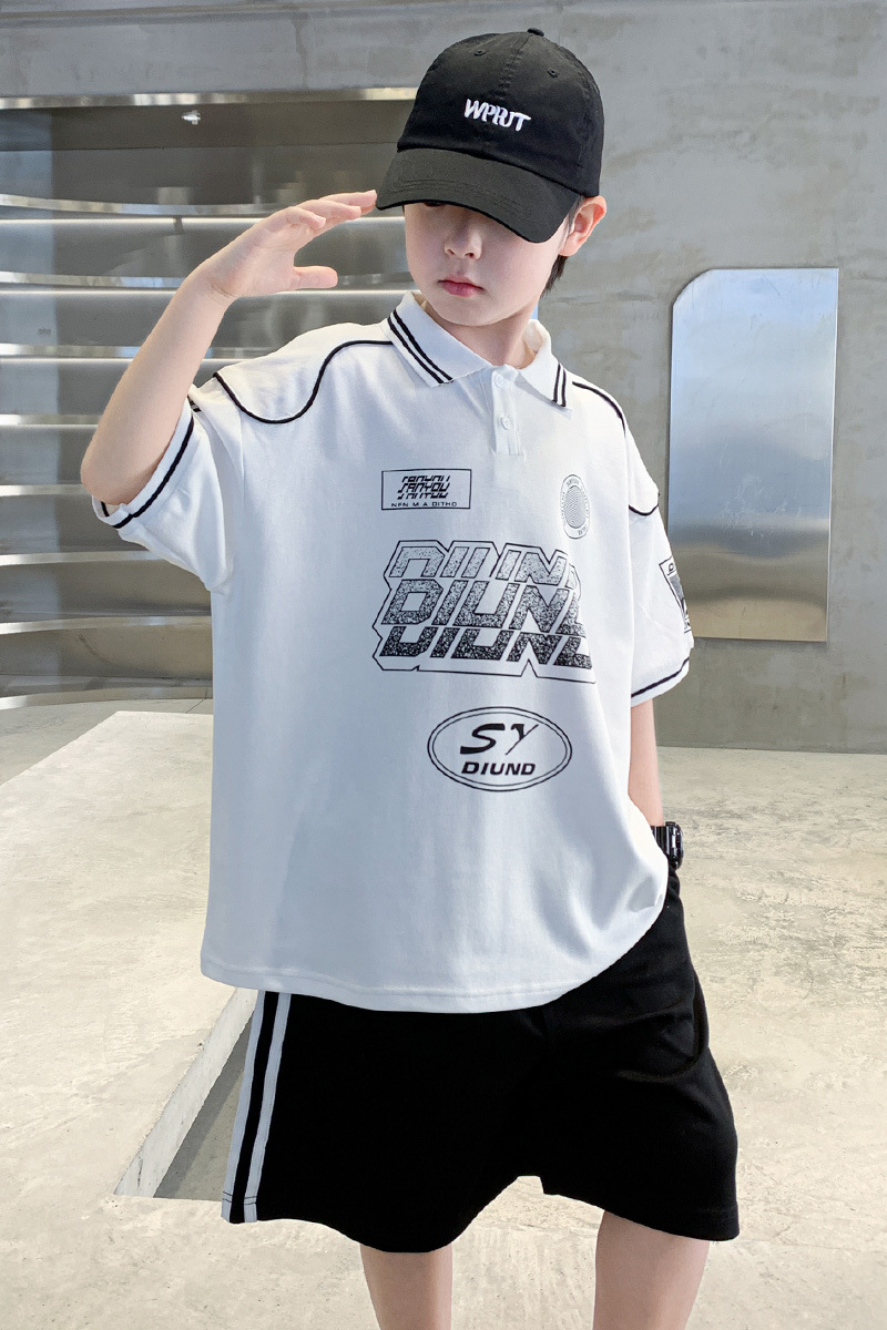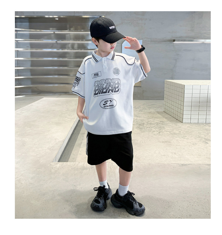 소년 패션 폴로 셔츠 여름 반팔 정장 큰 어린이 한국 스타일 캐주얼 운동복 소년 잘 생긴 투피스 세트
