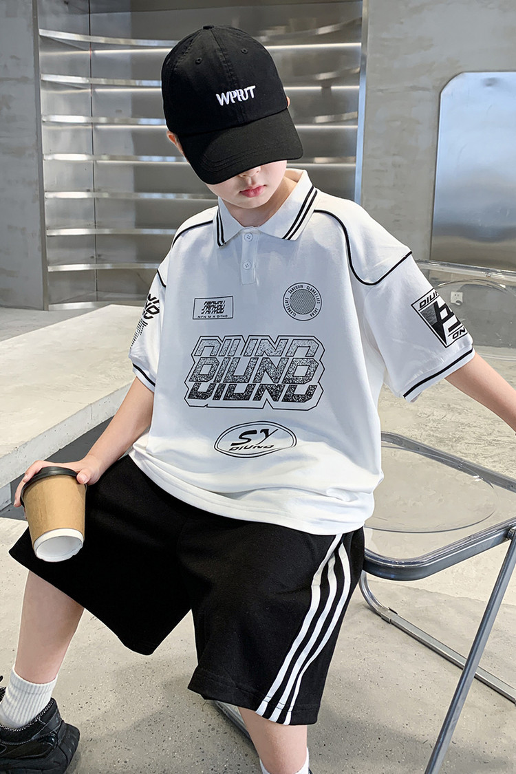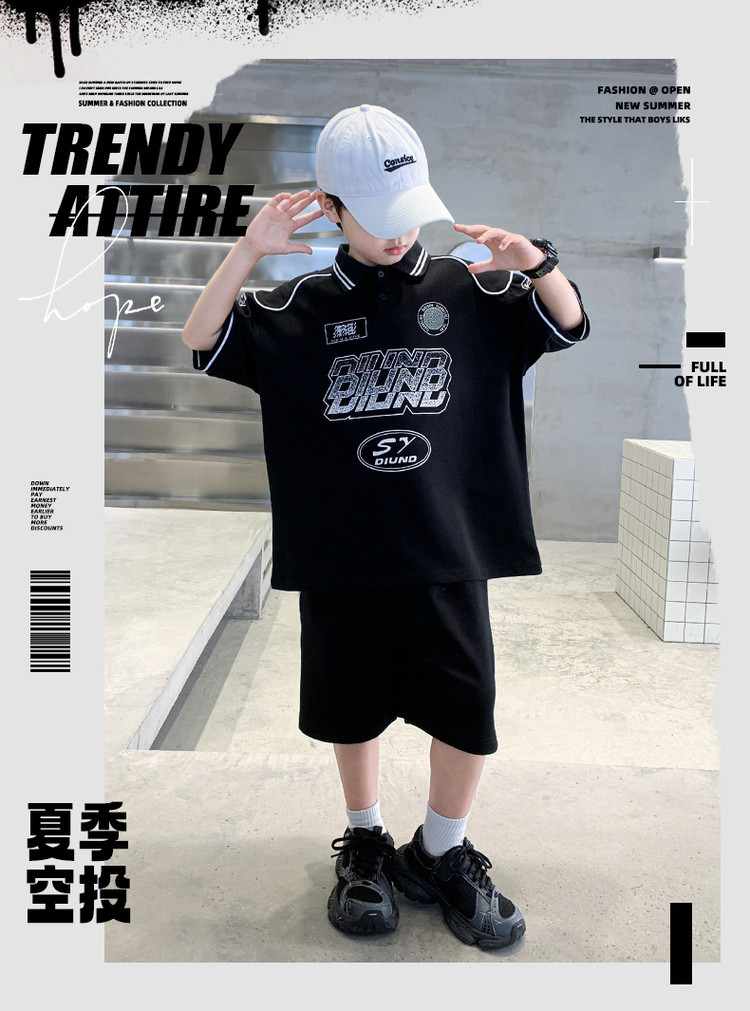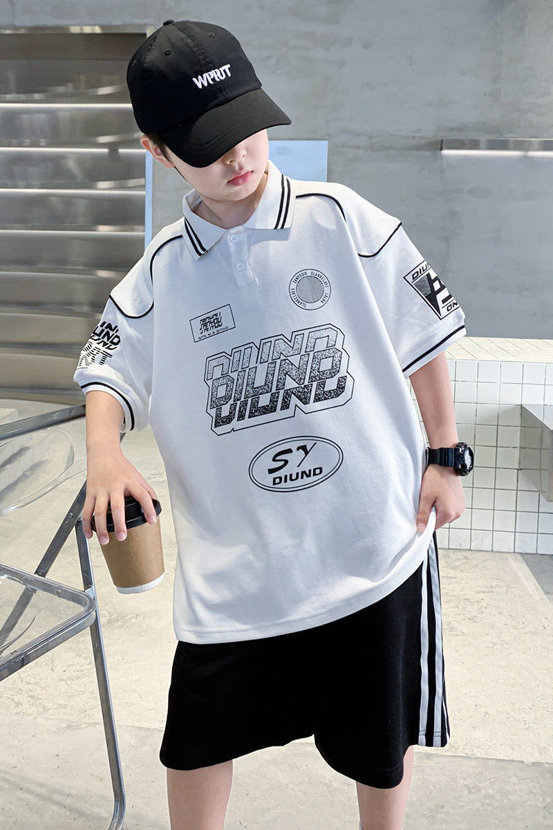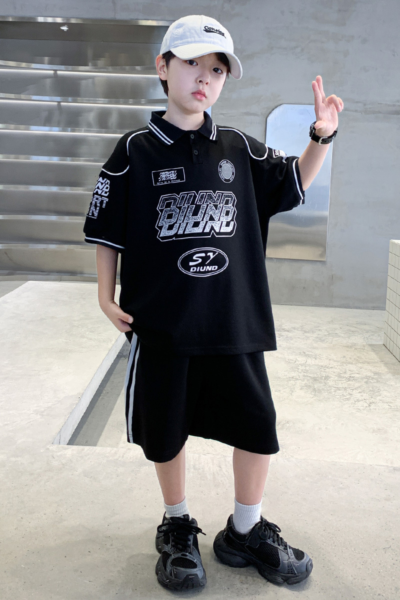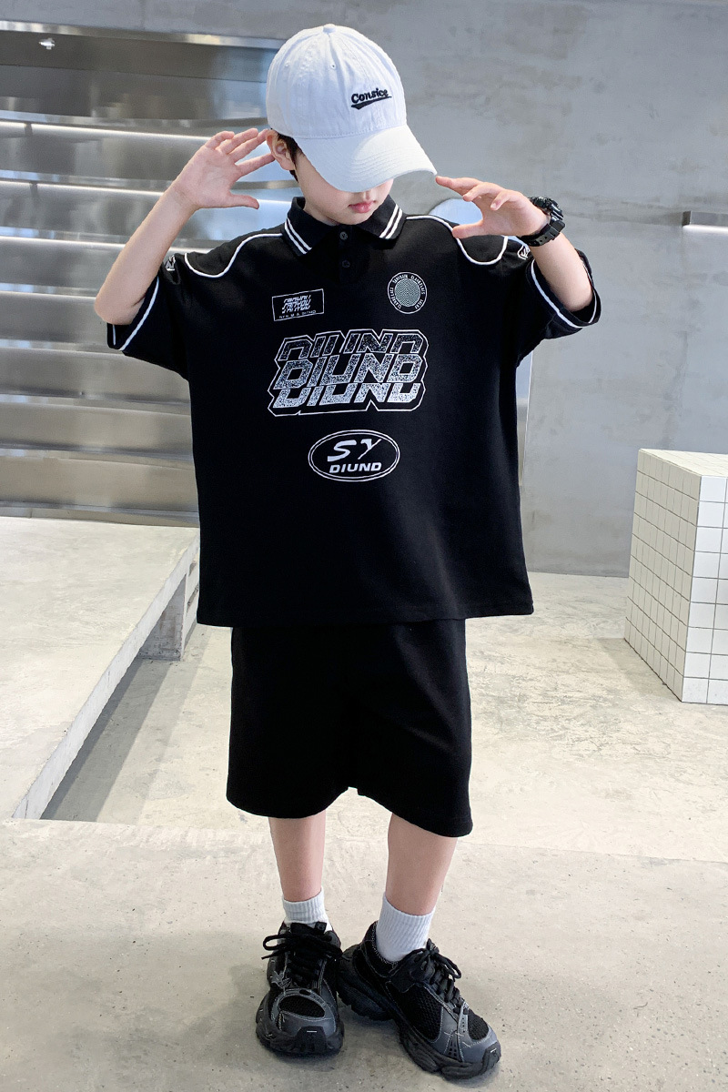 소년 패션 폴로 셔츠 여름 반팔 정장 큰 어린이 한국 스타일 캐주얼 운동복 소년 잘 생긴 투피스 세트