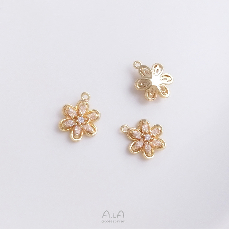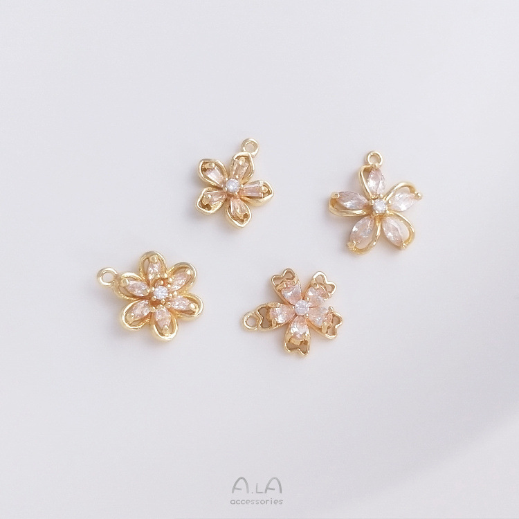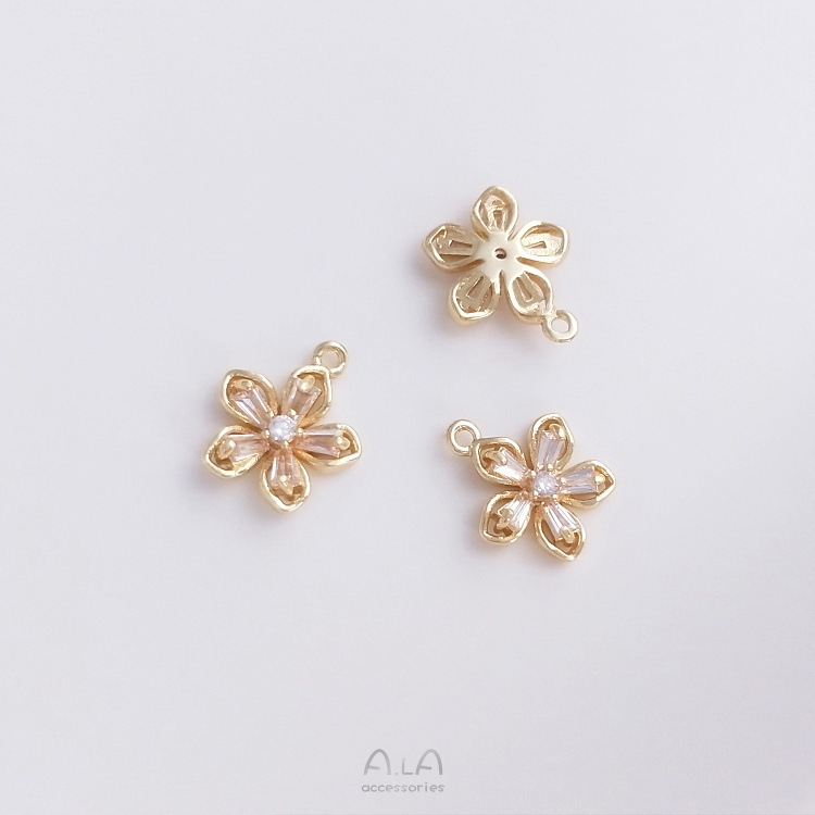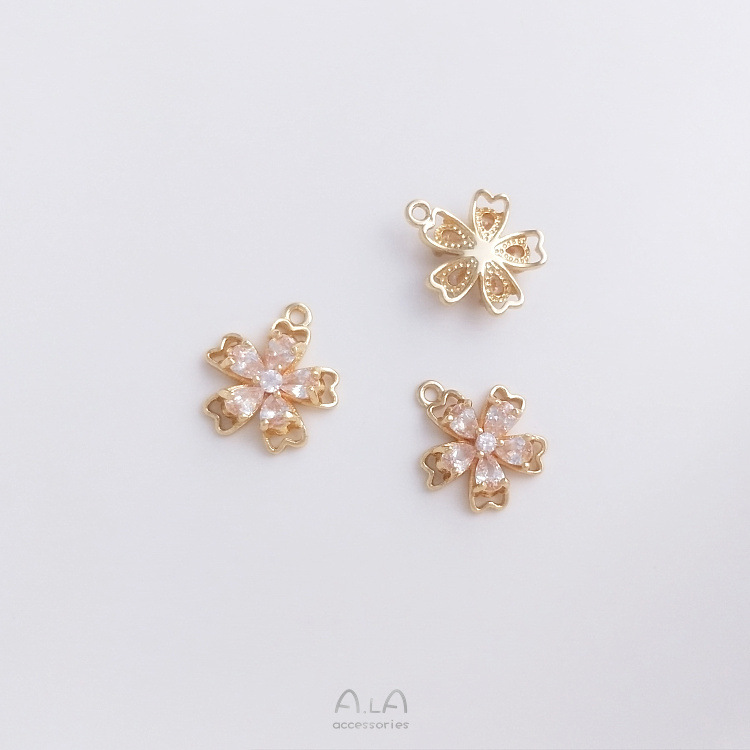 색상 보존 14K 금으로 채워진 미니 지르콘 꽃 펜던트 복숭아 꽃 벚꽃 펜던트 diy 팔찌 귀걸이 쥬얼리 펜던트스토어 가기
