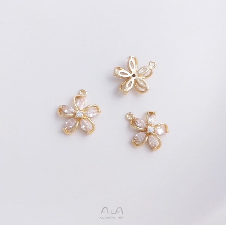 색상 보존 14K 금으로 채워진 미니 지르콘 꽃 펜던트 복숭아 꽃 벚꽃 펜던트 diy 팔찌 귀걸이 쥬얼리 펜던트