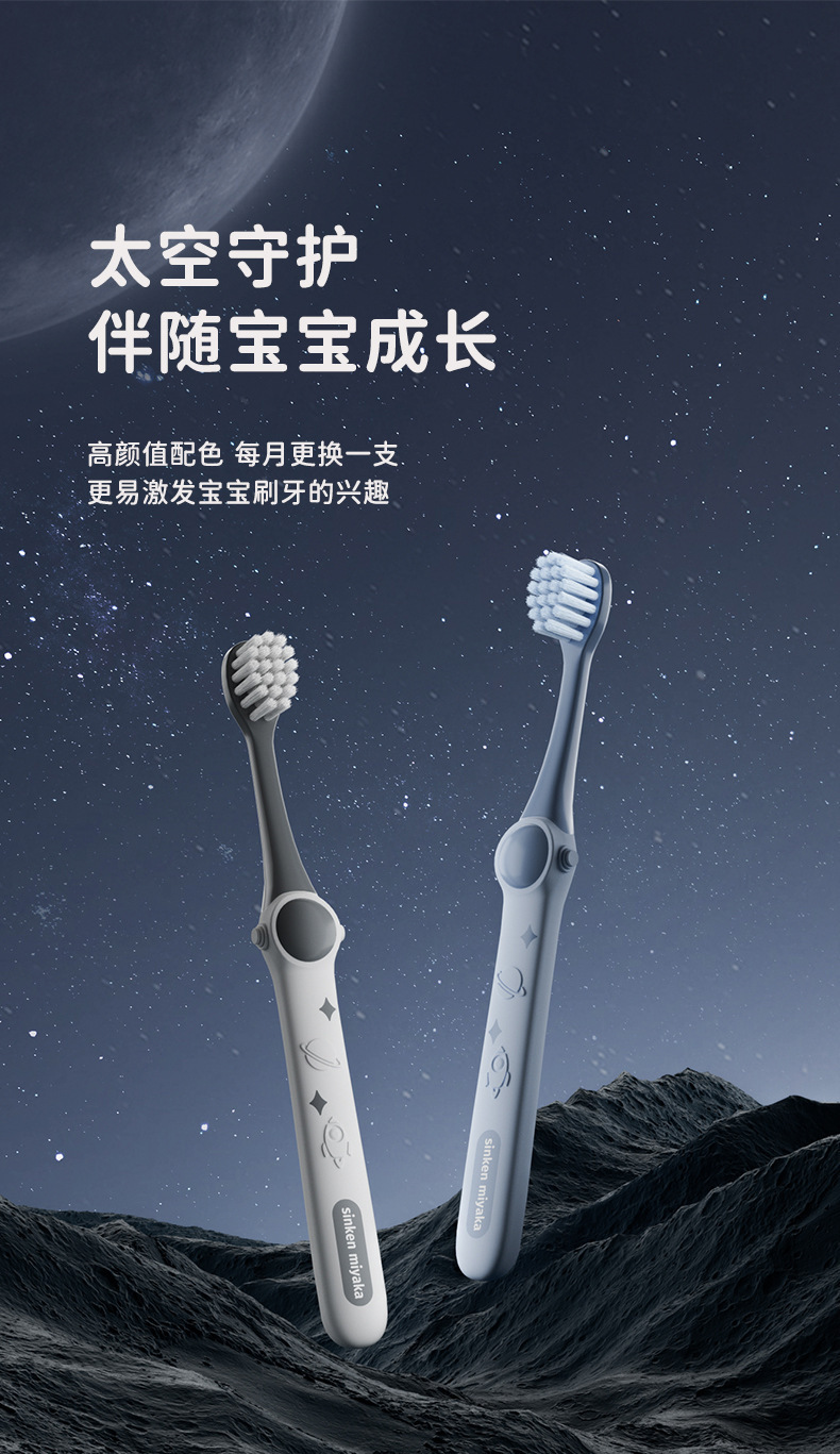 샘 스페이스 어린이용 칫솔 부드러운 모 가정용 3-12세 유아 치아교정용 칫솔