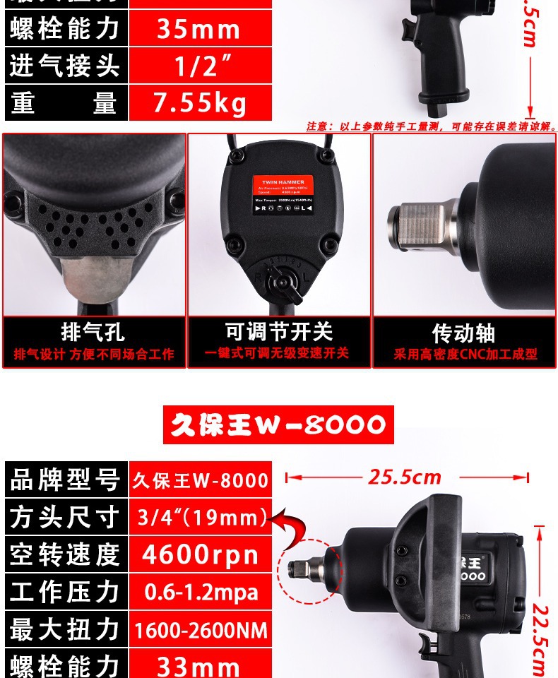 Kubo King 산업용 등급 공기 총 중형 1inch 자동 수리 공압 도구 3/4 고 토크 헤비 듀티 공기 총 공압 렌치스토어 가기