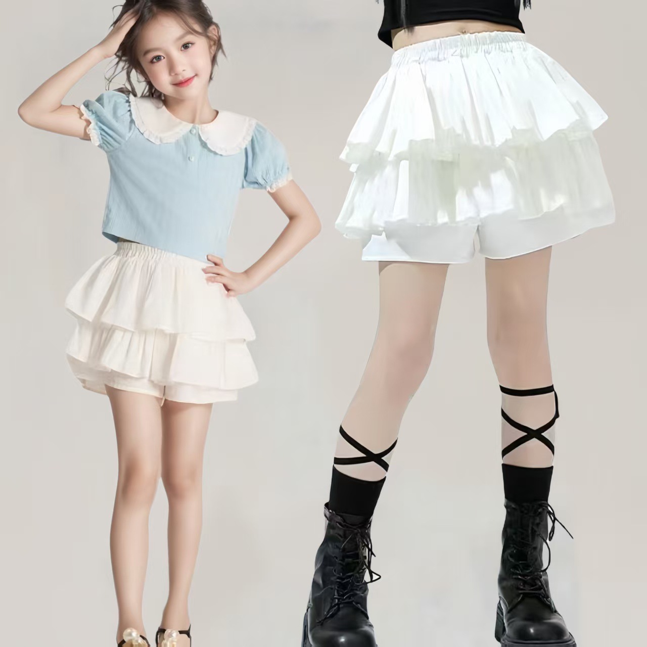 Culottes Girls Jazz Dance 의상 어린이 스트리트 댄스 패션 의상 치어 리더 댄스 의상 스커트 여성 스커트