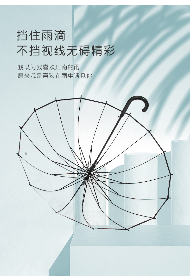 16-뼈 투명한 우산 긴 손잡이 큰 두 배 여자의 흰색 인터넷-붉은 우산 맑고 비오는 이중-강한 바람 방지 우산 사용스토어 가기