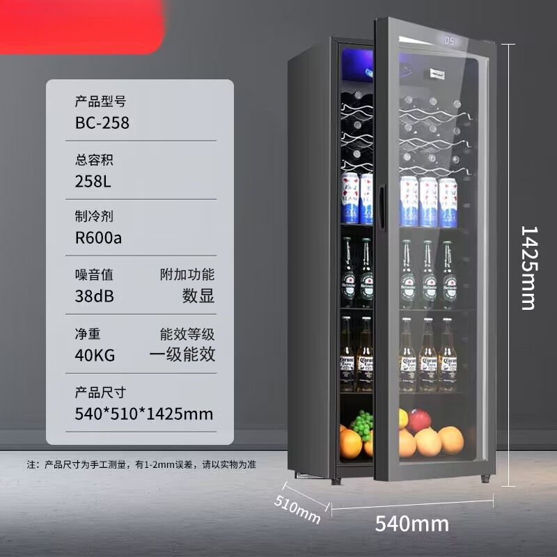 • 258L [순동관] 컴퓨터 디지털 디스플레이 + 완전 냉장 + 조명이 있는 LED