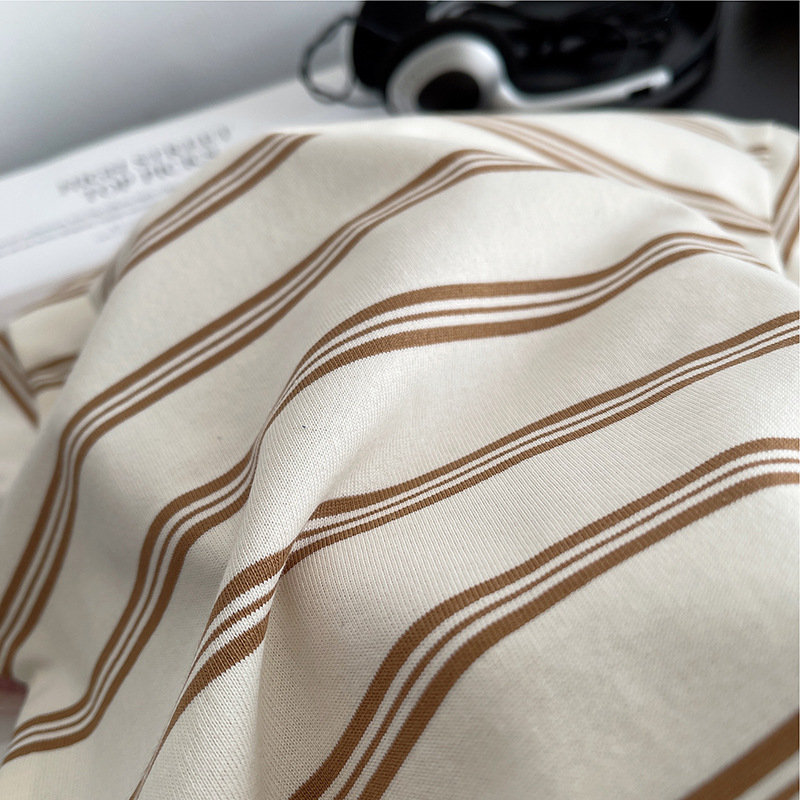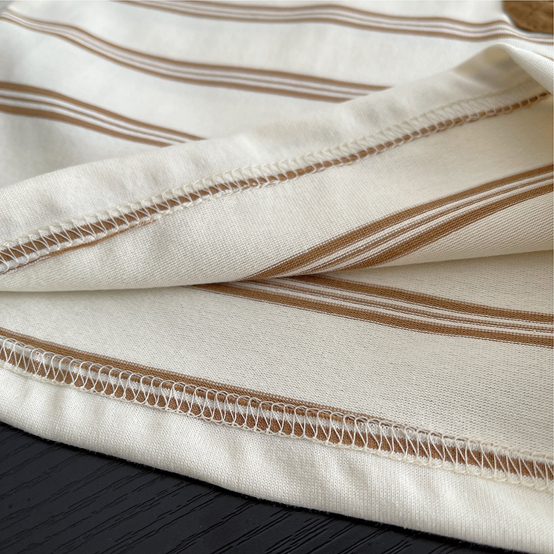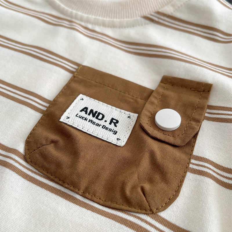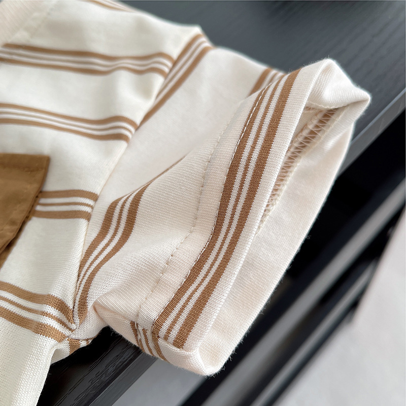 • 브라운 2528 스트라이프 티셔츠 포켓 반팔 투피스 세트