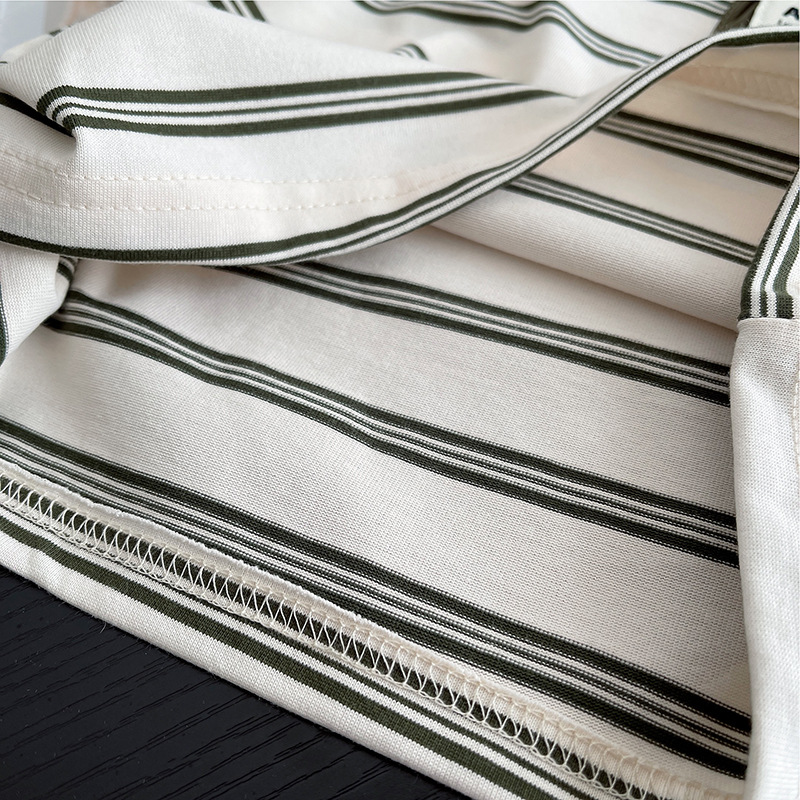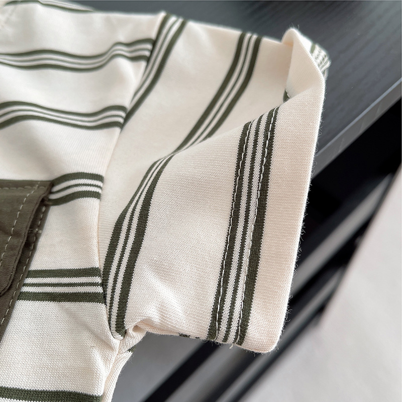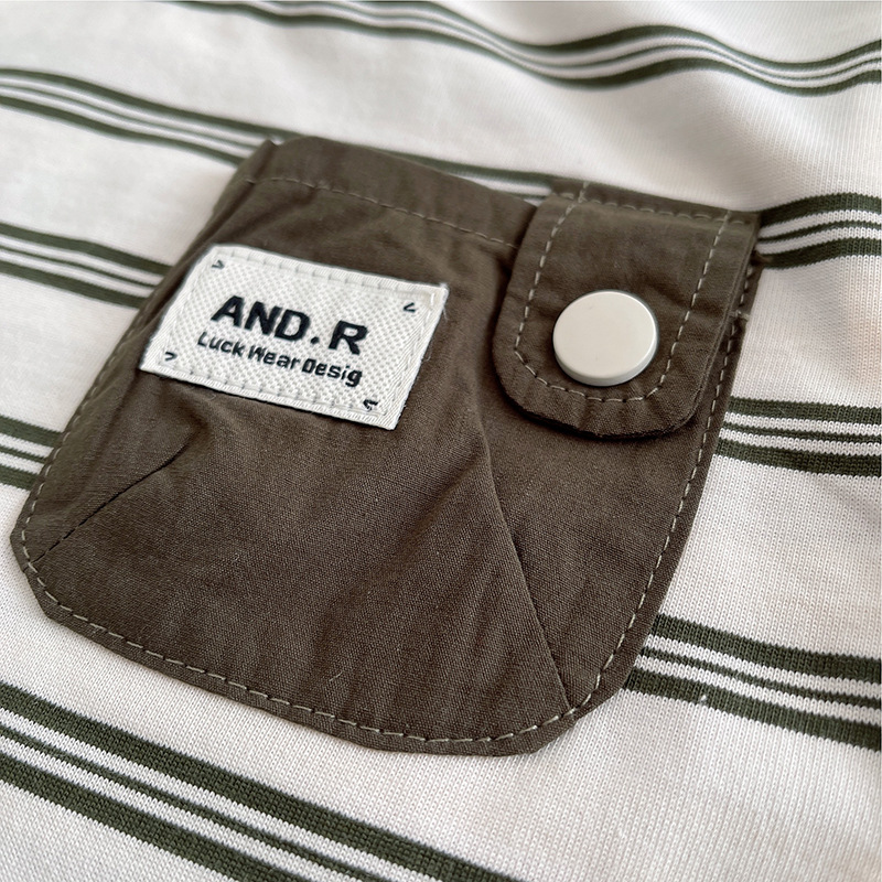 • 아미 그린 2528 스트라이프 티셔츠 포켓 반팔 투피스 세트
