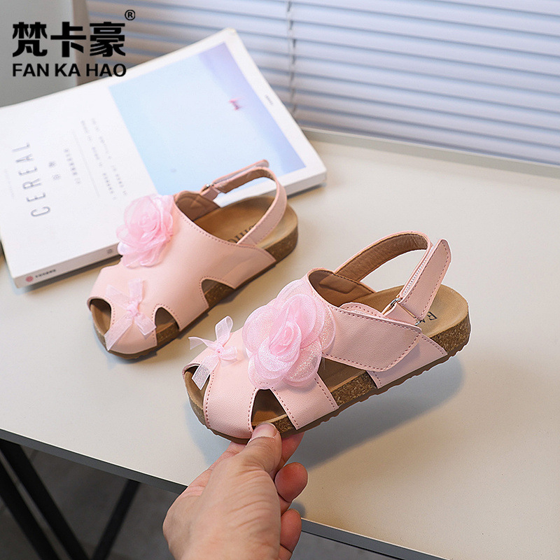Van Cahao Niche 디자인 생선 발가락 Birkan 신발 2025 여름 새 소녀의 작은 꽃 코르크 샌들 비치 신발스토어 가기