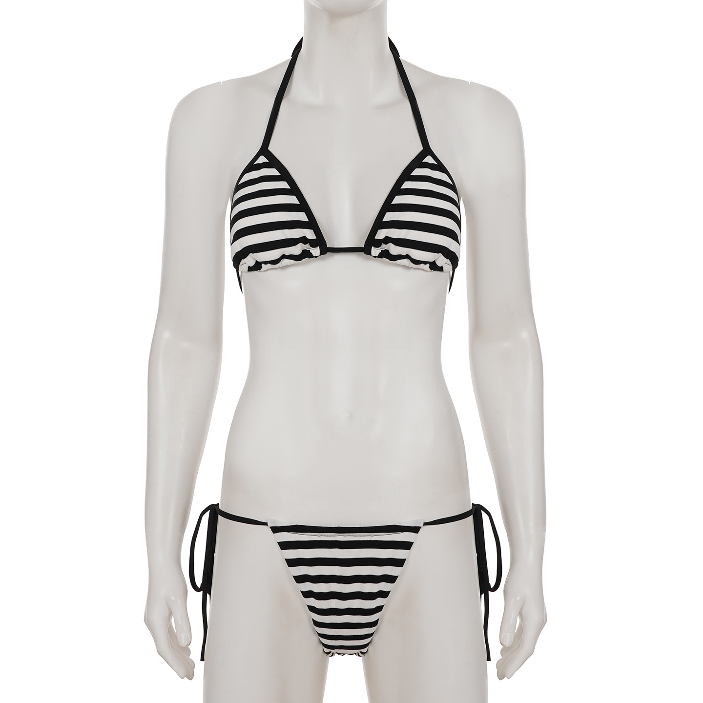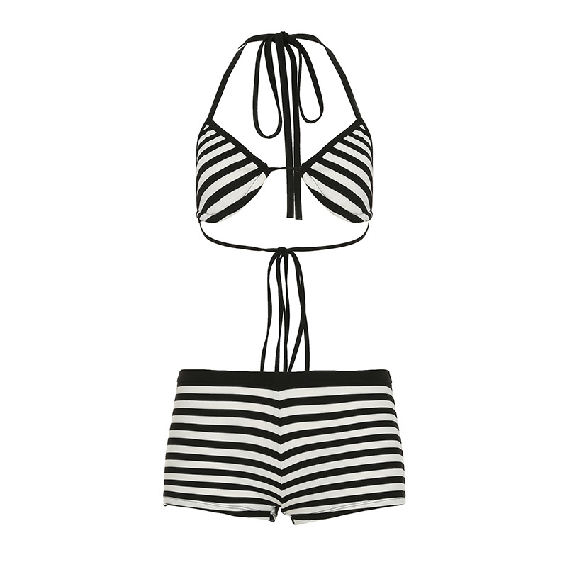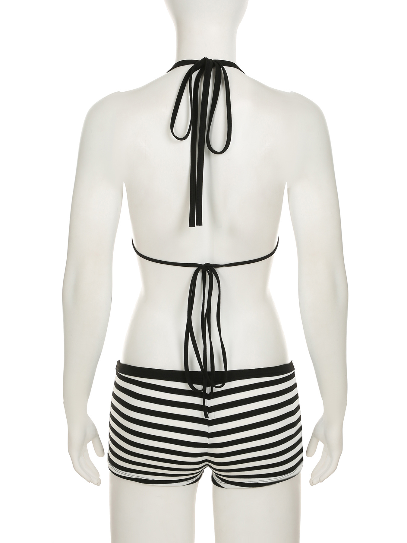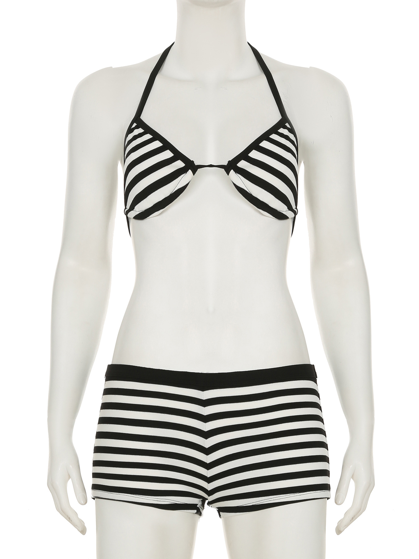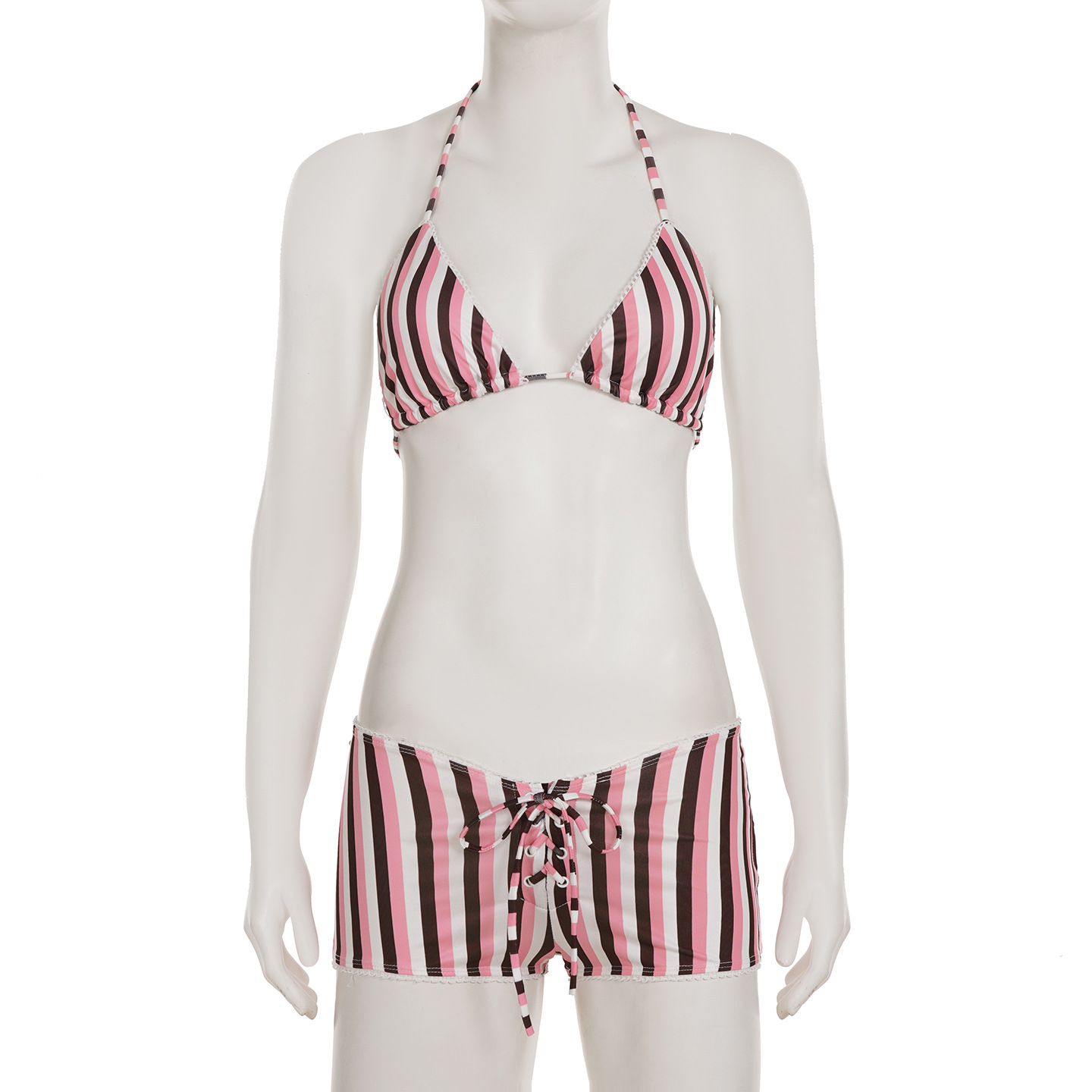 사랑의 옷감은 미국 휴가 스타일을 잊어 버립니다. 섹시한 줄무늬 비키니 세트 스파이스 소녀 목 조끼 반바지 2 피스 세트