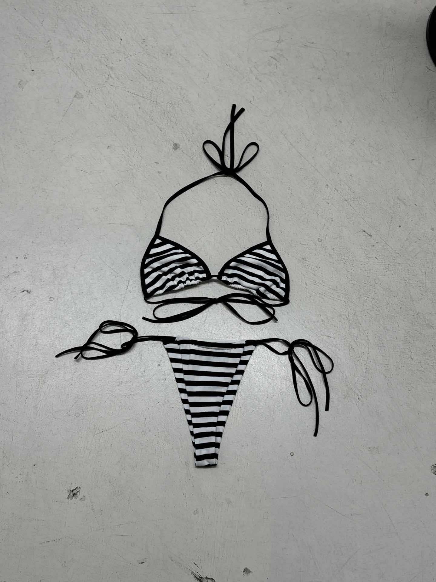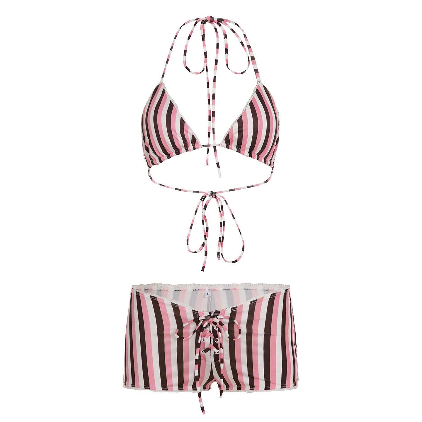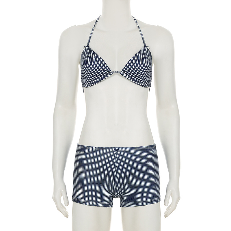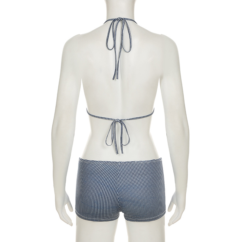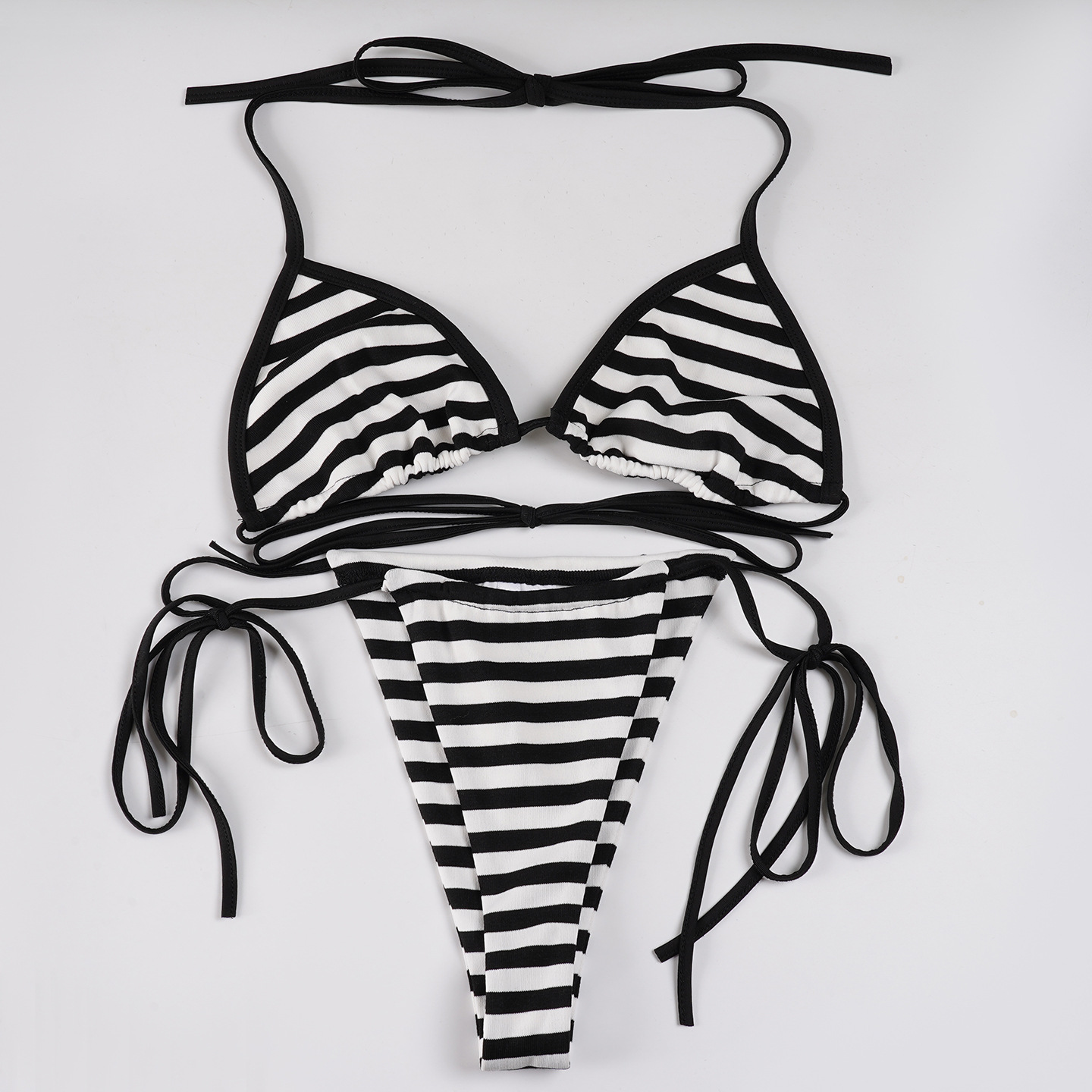 사랑의 옷감은 미국 휴가 스타일을 잊어 버립니다. 섹시한 줄무늬 비키니 세트 스파이스 소녀 목 조끼 반바지 2 피스 세트