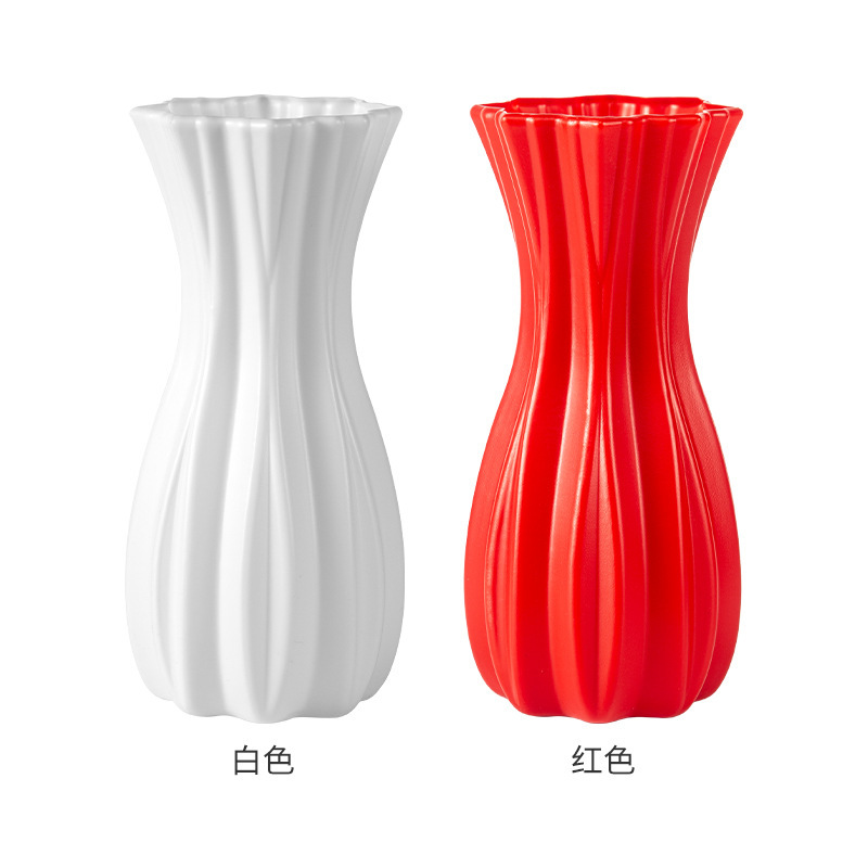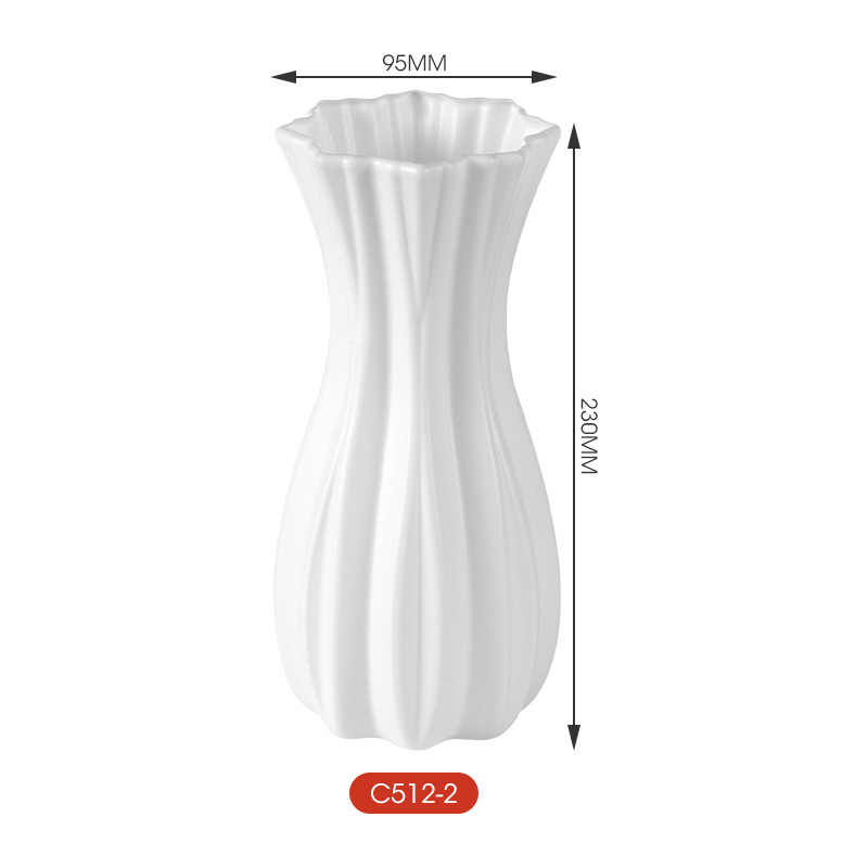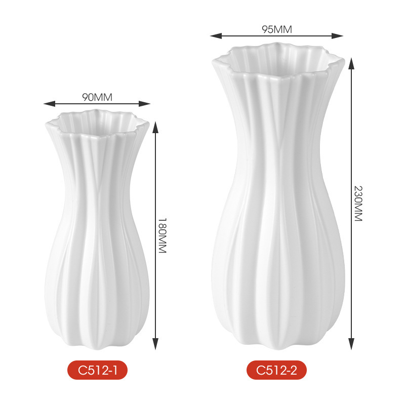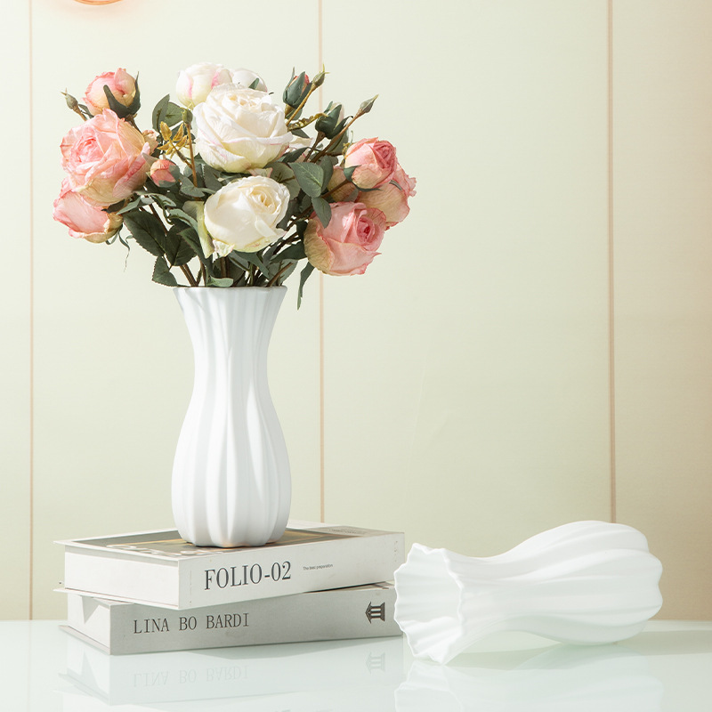 소스 제조 업체 간단한 꽃 병 두꺼운 플라스틱 꽃병 고급 흰색 모조 세라믹 장식 병은 물을 저장할 수 있습니다