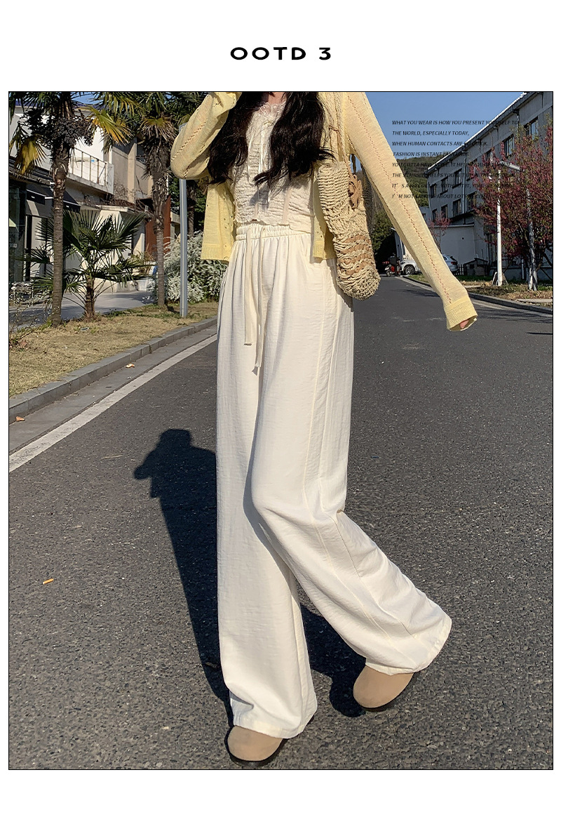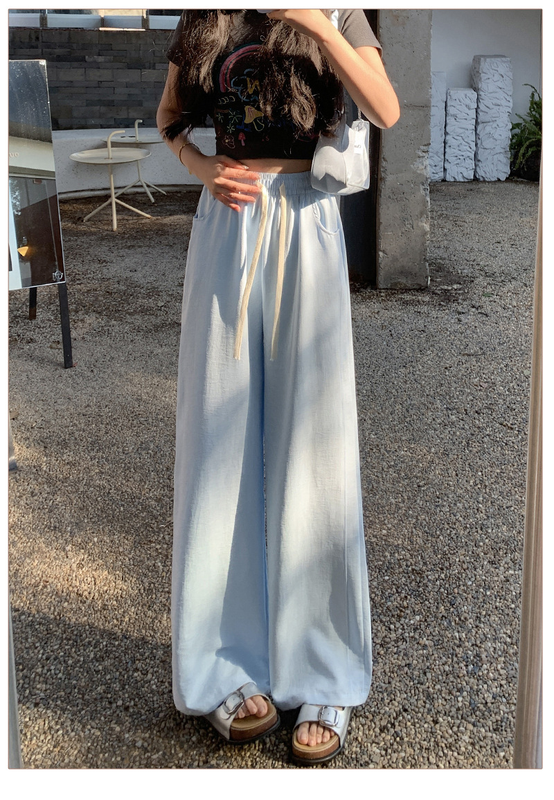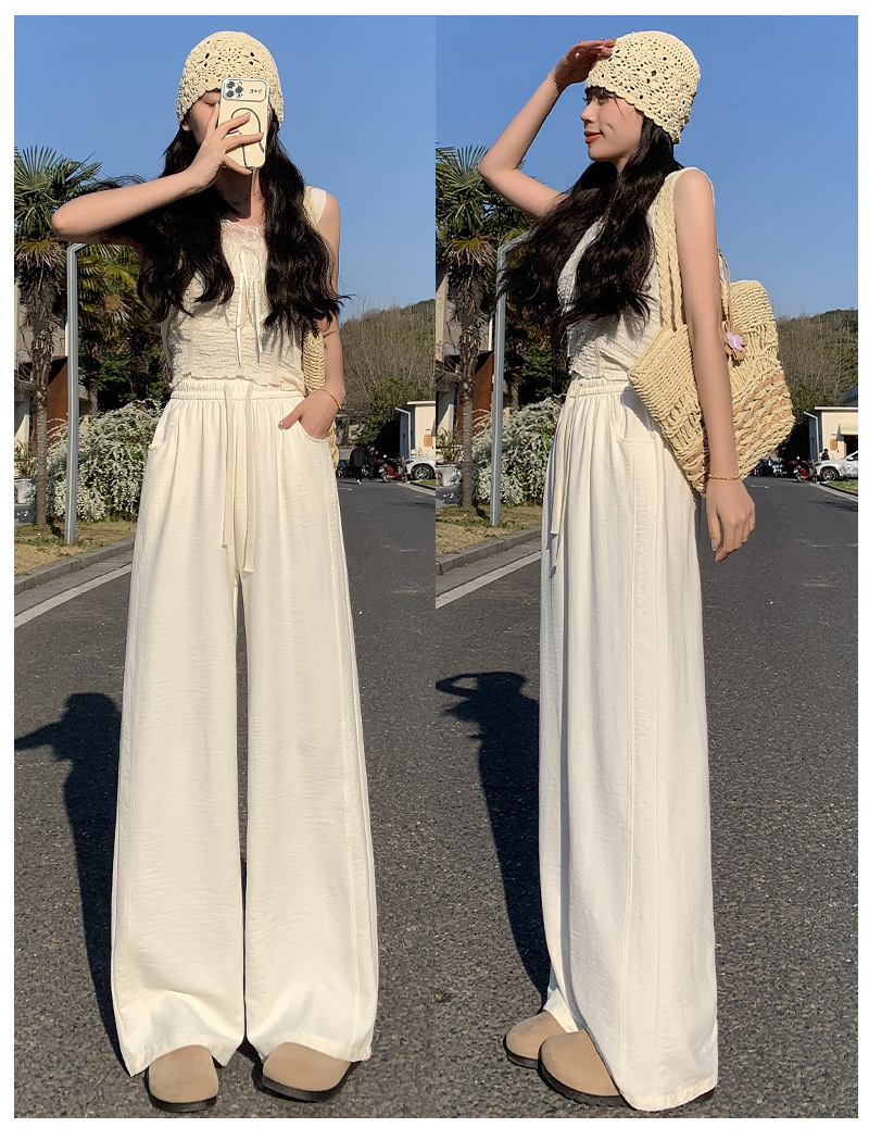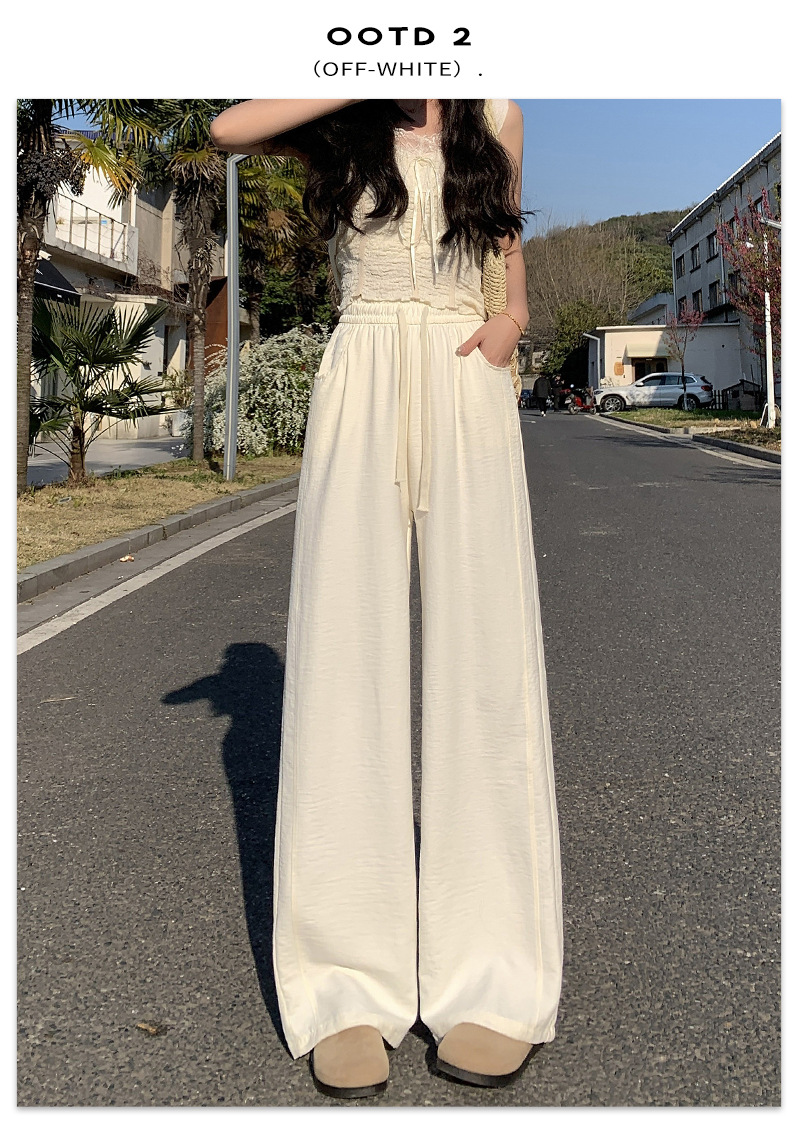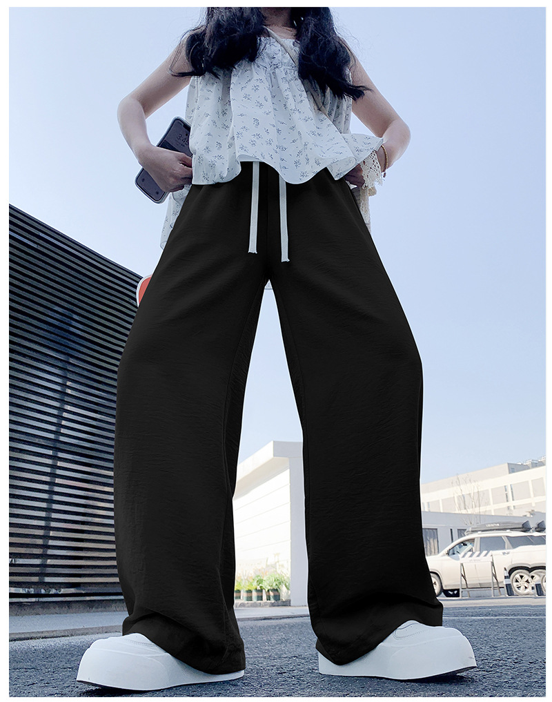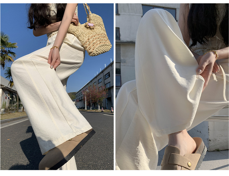 사이드 스펠 넓은 다리 바지 여성용 봄과 여름 새로운 높은 허리 담근 질감 야마모토 바지 느슨한 캐주얼 긴 바지