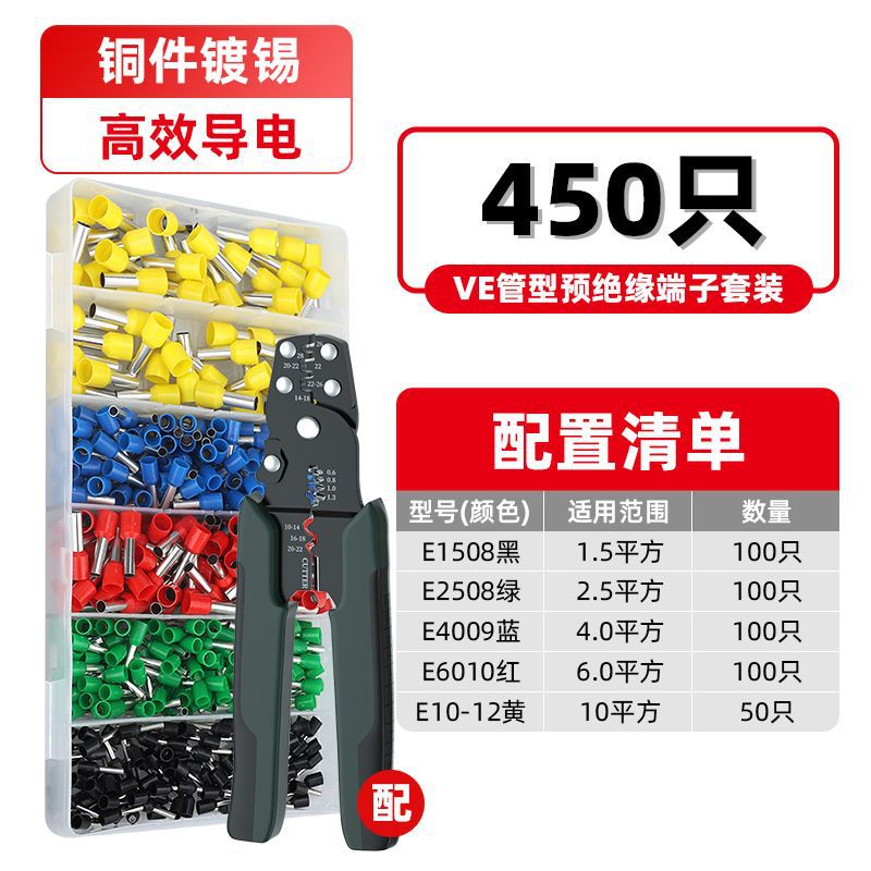 VE 튜브형 냉간 압착 단자 세트 구리 단자 보관함 와이어 커넥터 압착 펜치 스위치 패널