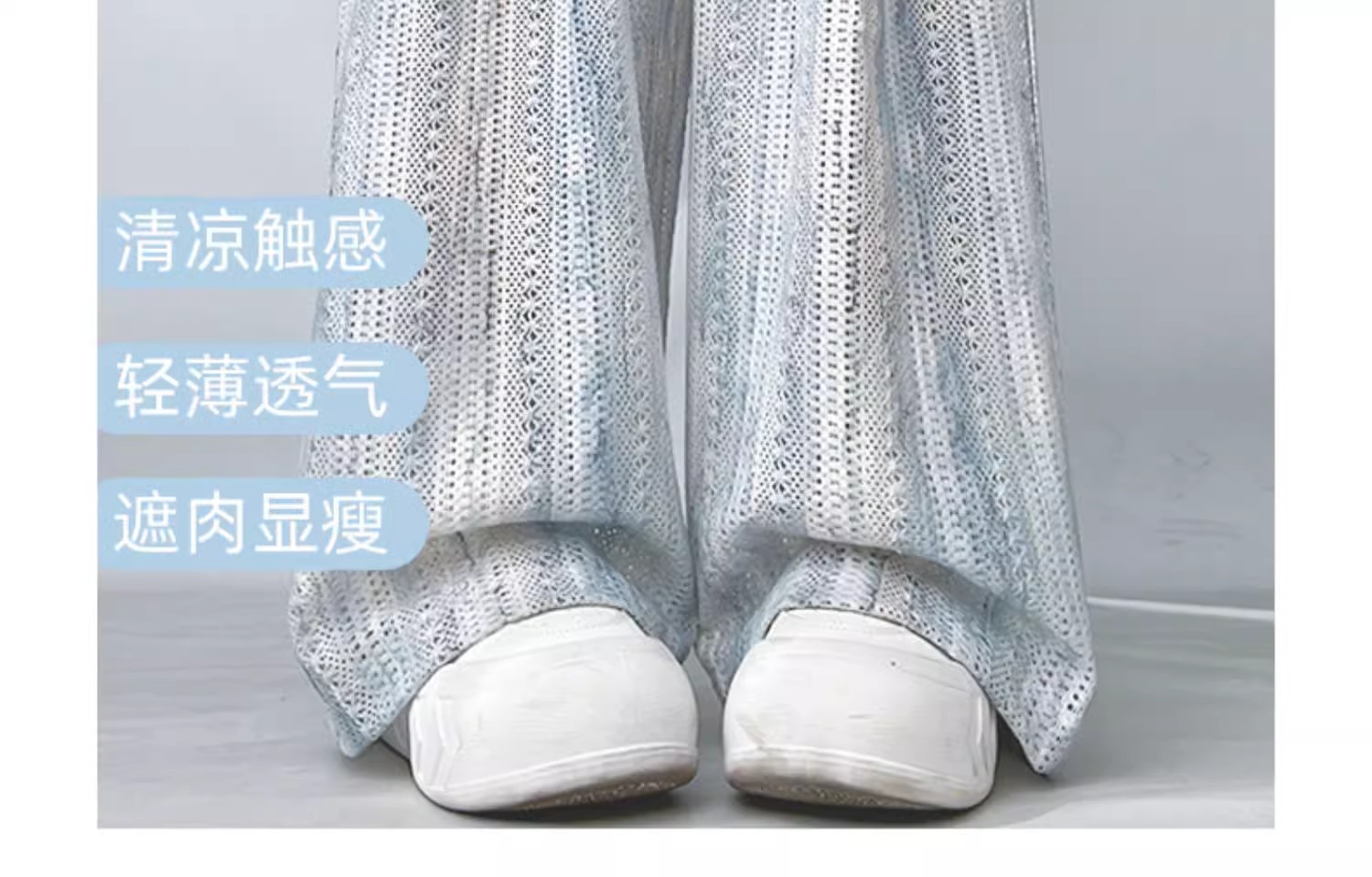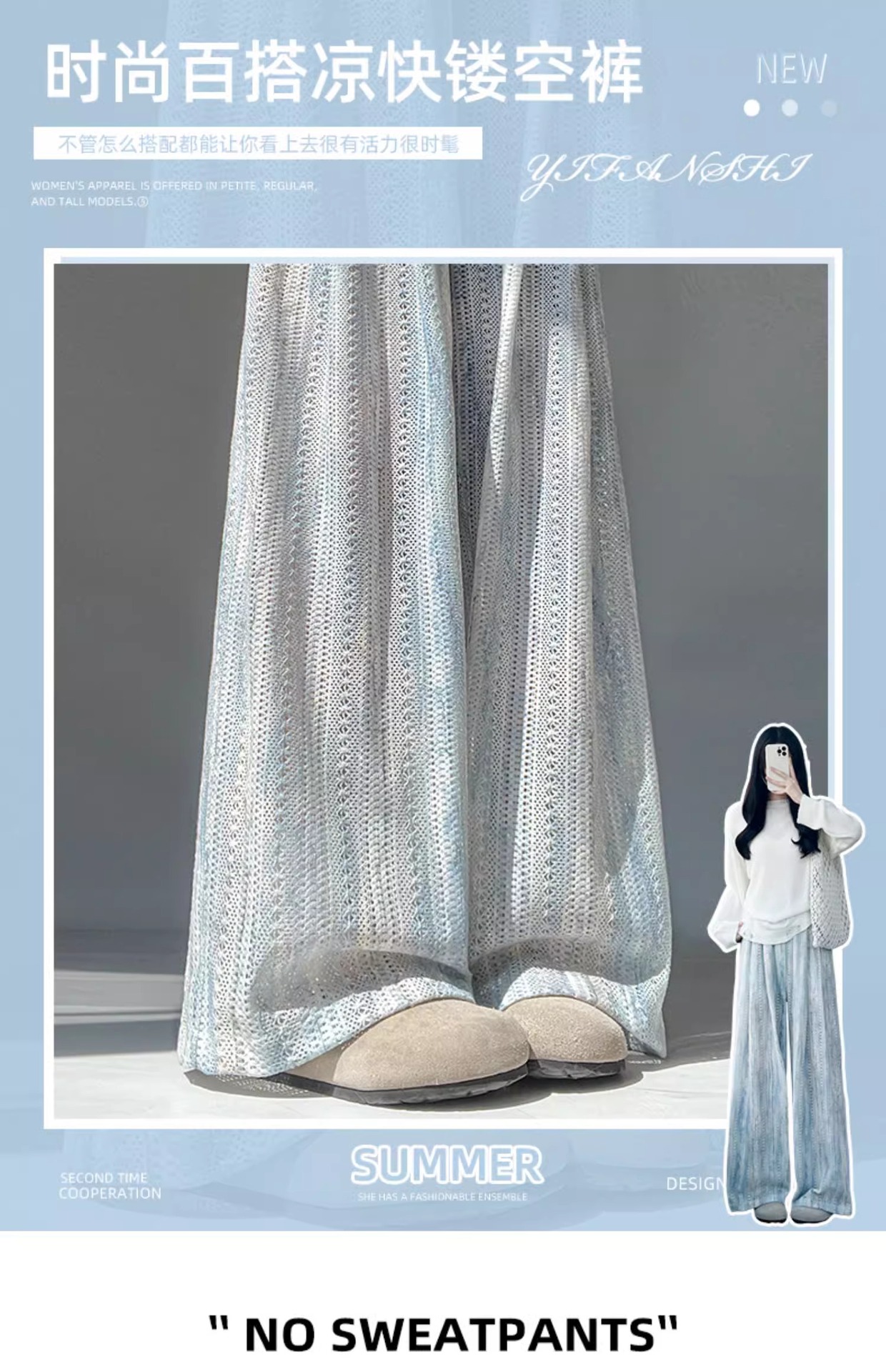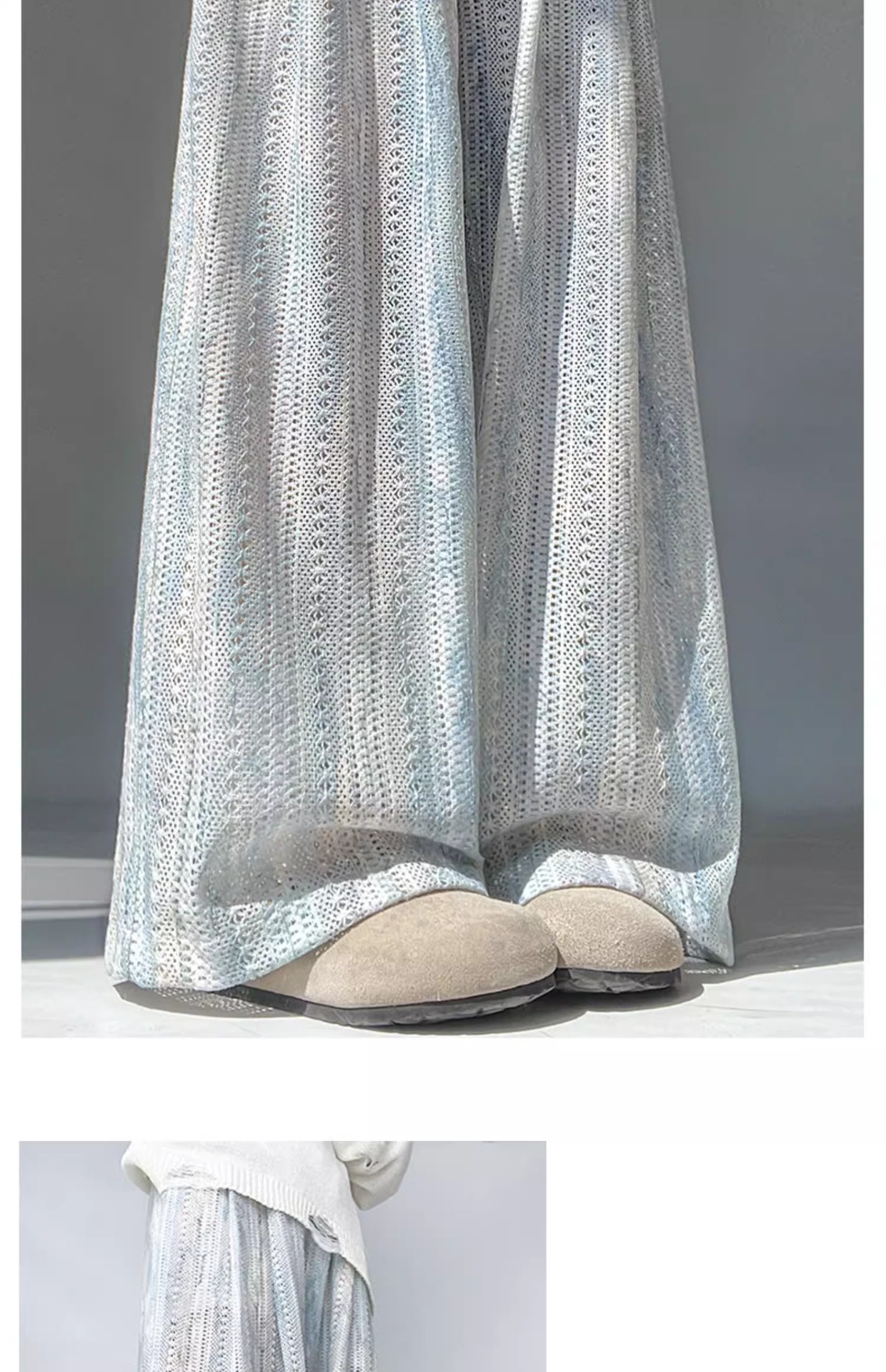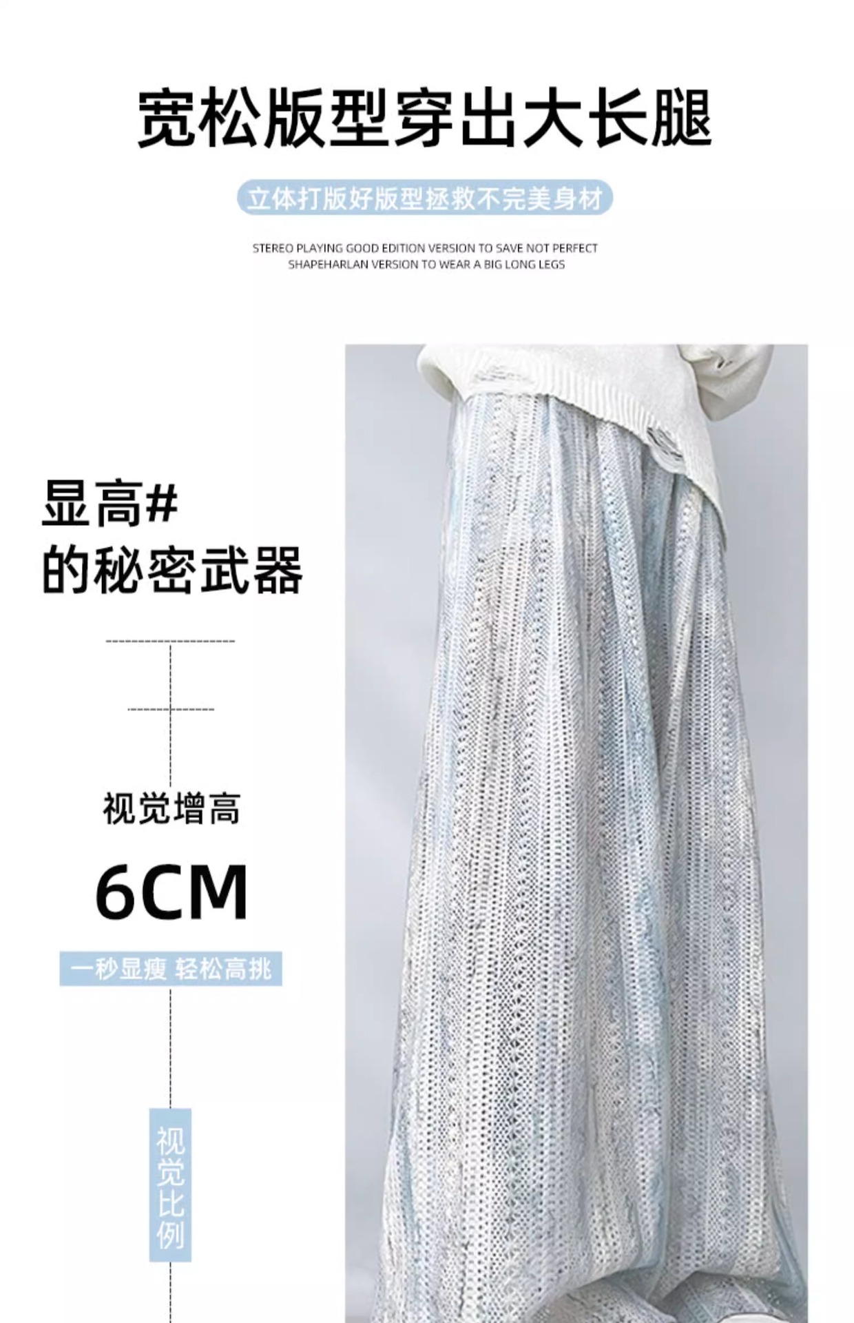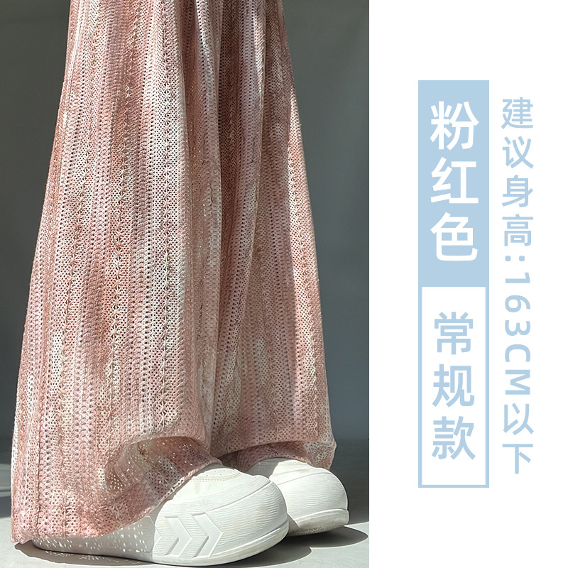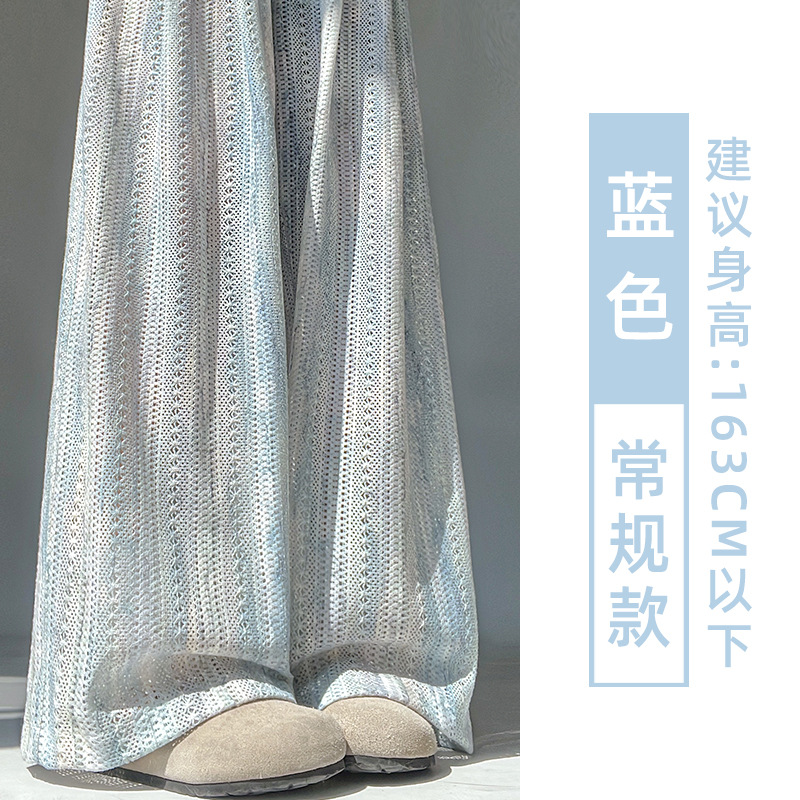 블루 타이 다이 할로우 아웃 와이드 레그 팬츠 여성용 여름 얇은 2025 새로운 캐주얼 작은 하이 웨이스트 더깅 아이스 실크 야마모토 팬츠스토어 가기