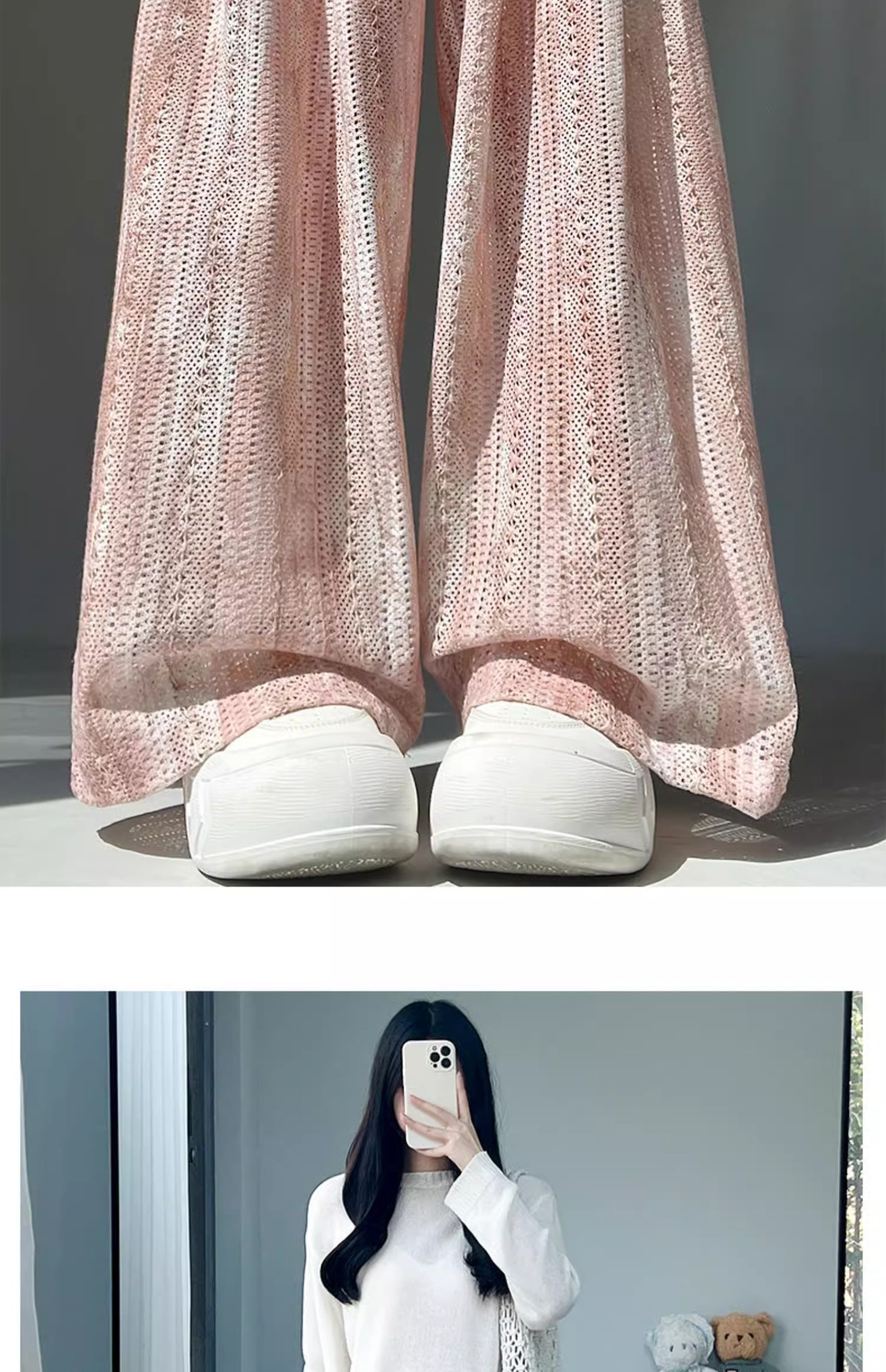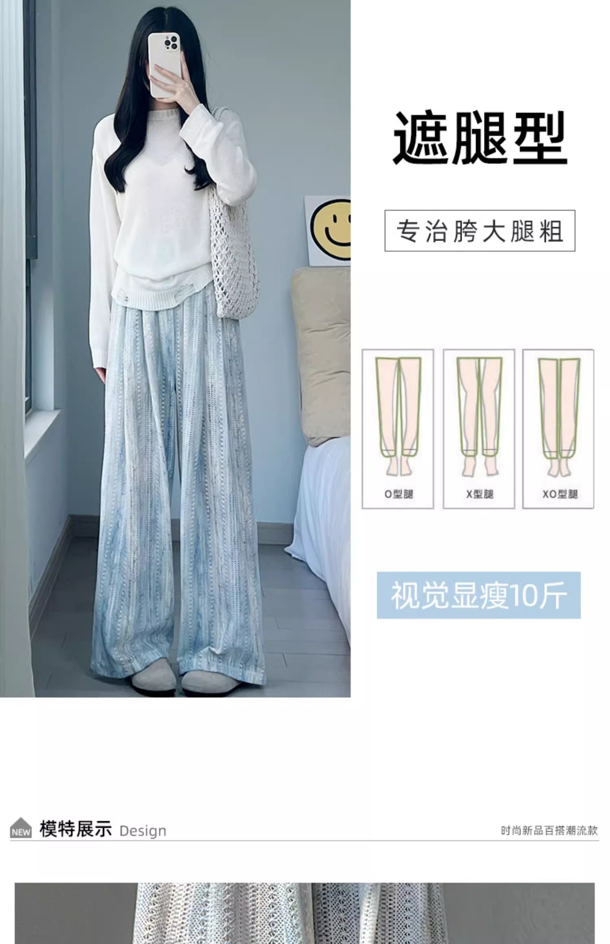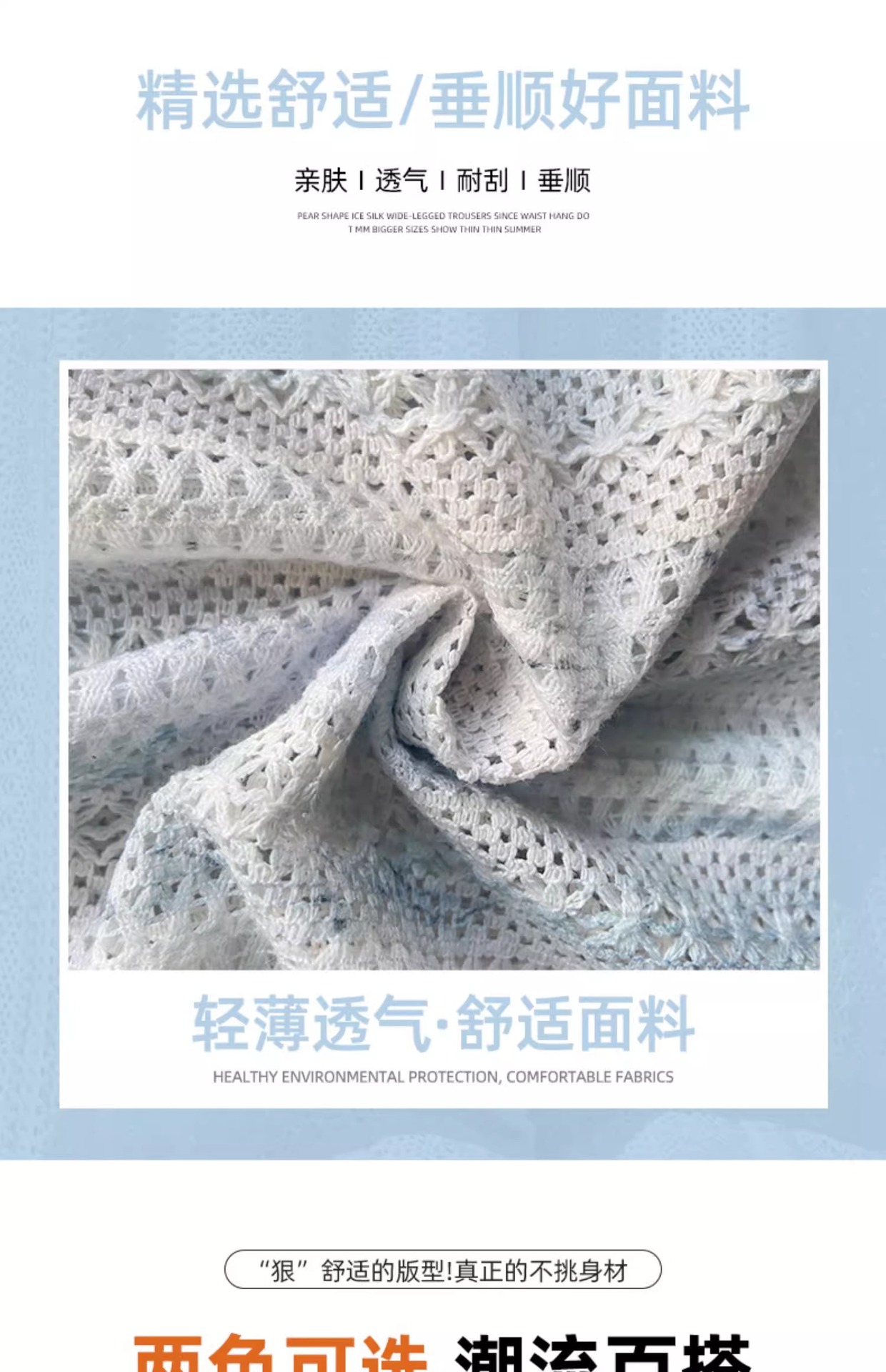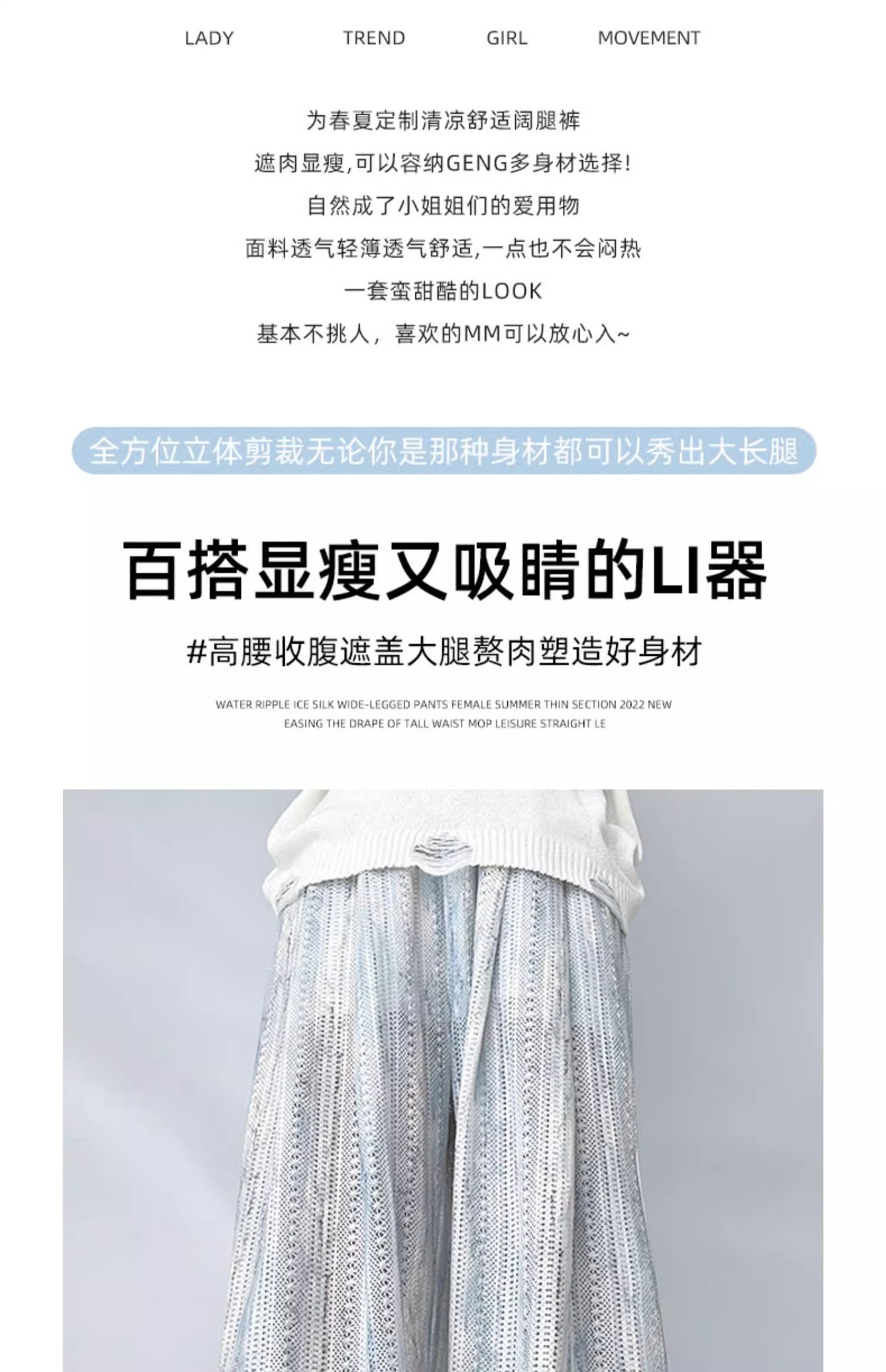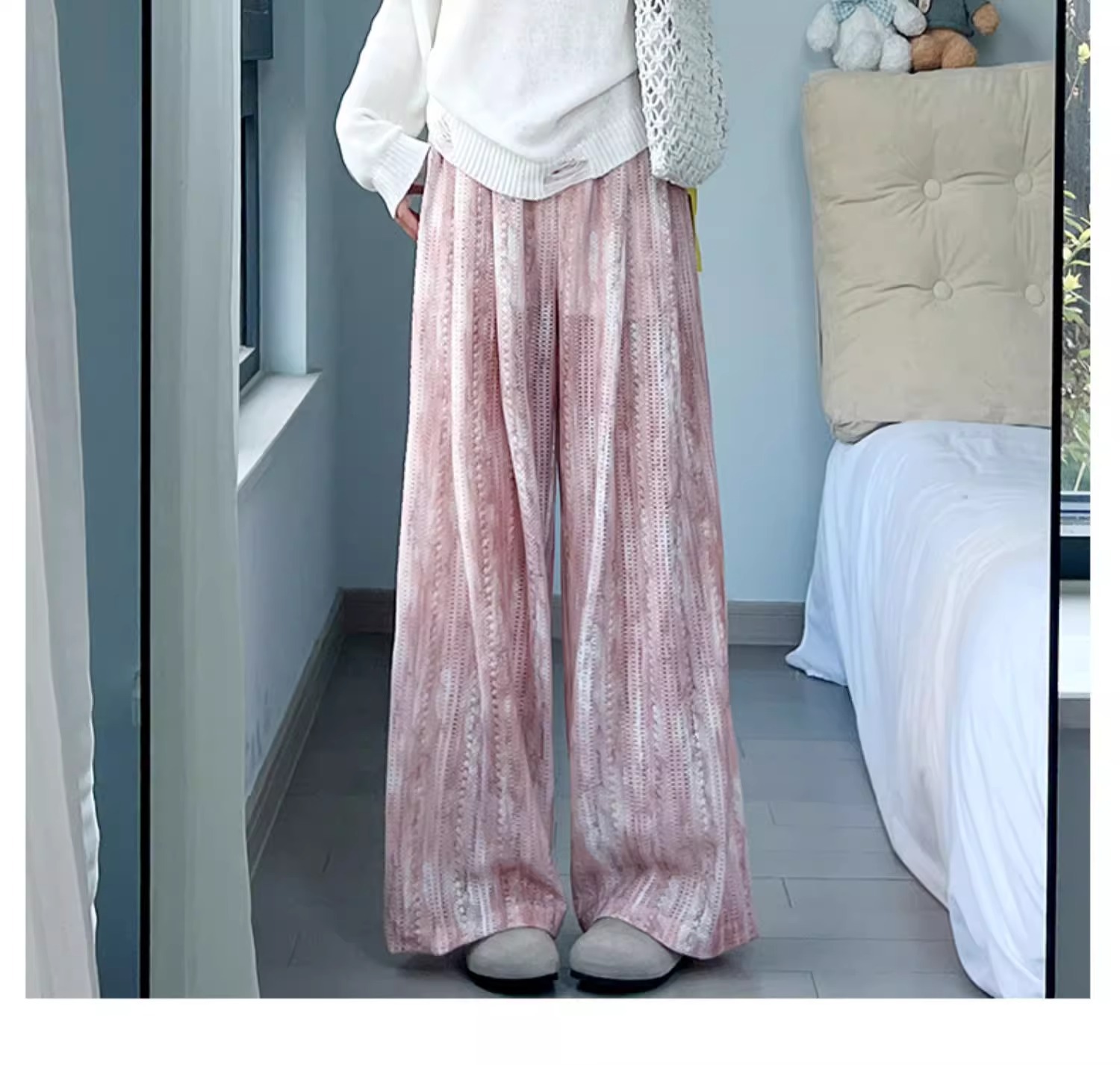 블루 타이 다이 할로우 아웃 와이드 레그 팬츠 여성용 여름 얇은 2025 새로운 캐주얼 작은 하이 웨이스트 더깅 아이스 실크 야마모토 팬츠스토어 가기