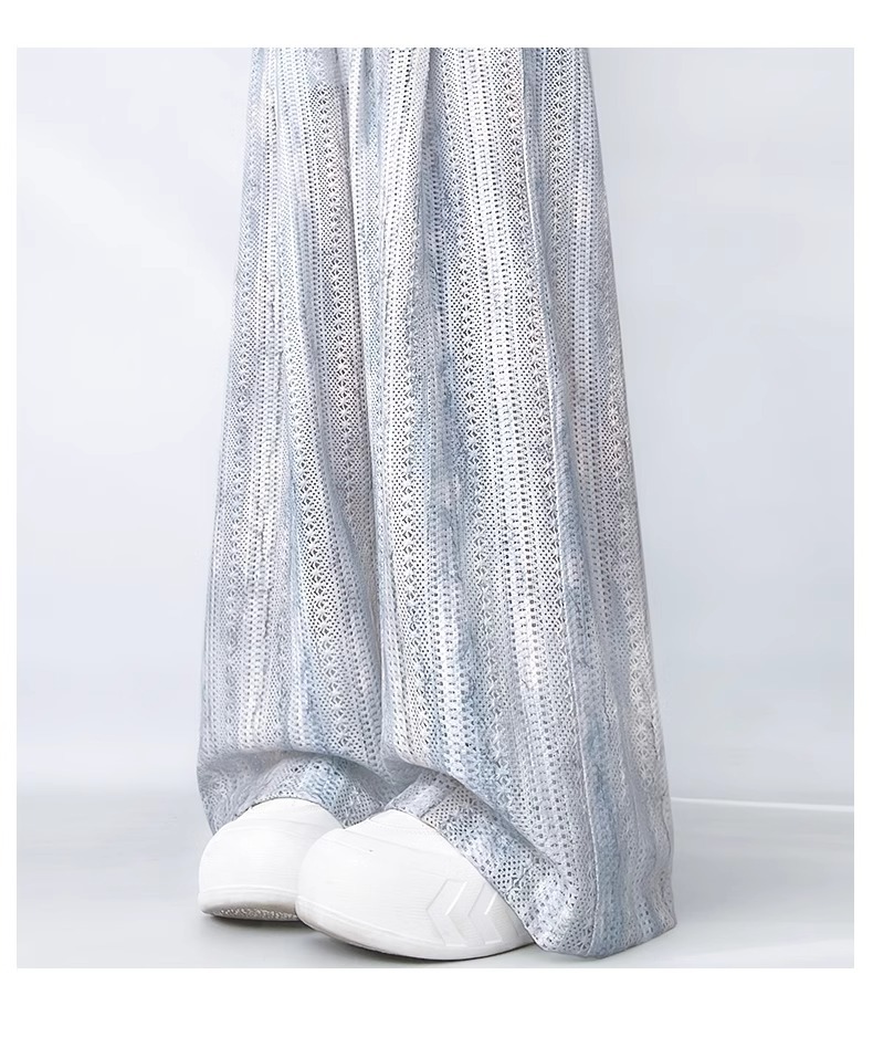 블루 타이 다이 할로우 아웃 와이드 레그 팬츠 여성용 여름 얇은 2025 새로운 캐주얼 작은 하이 웨이스트 더깅 아이스 실크 야마모토 팬츠