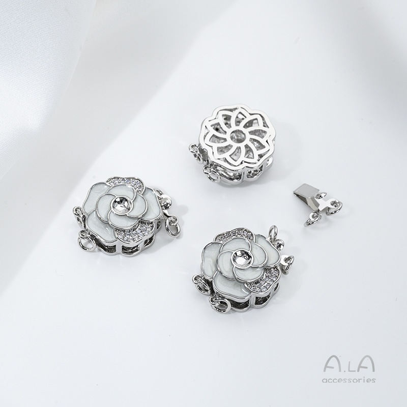 색상 보존 18K 구리 도금 진짜 금 상감 쉘 지르콘 오일 드롭 로즈 직사각형 더블 행 진주 버클 DIY 연결 버클스토어 가기