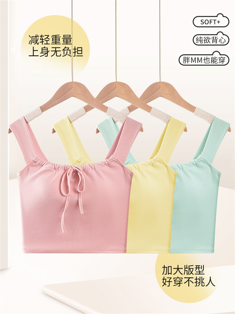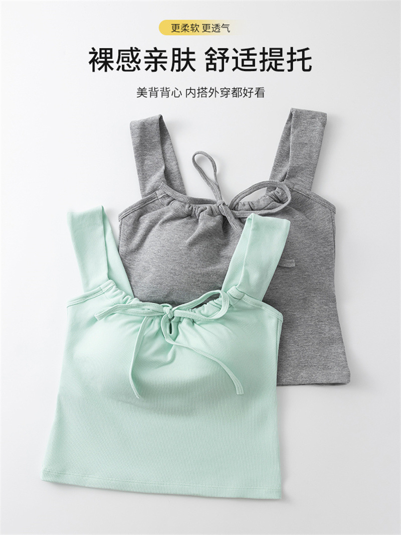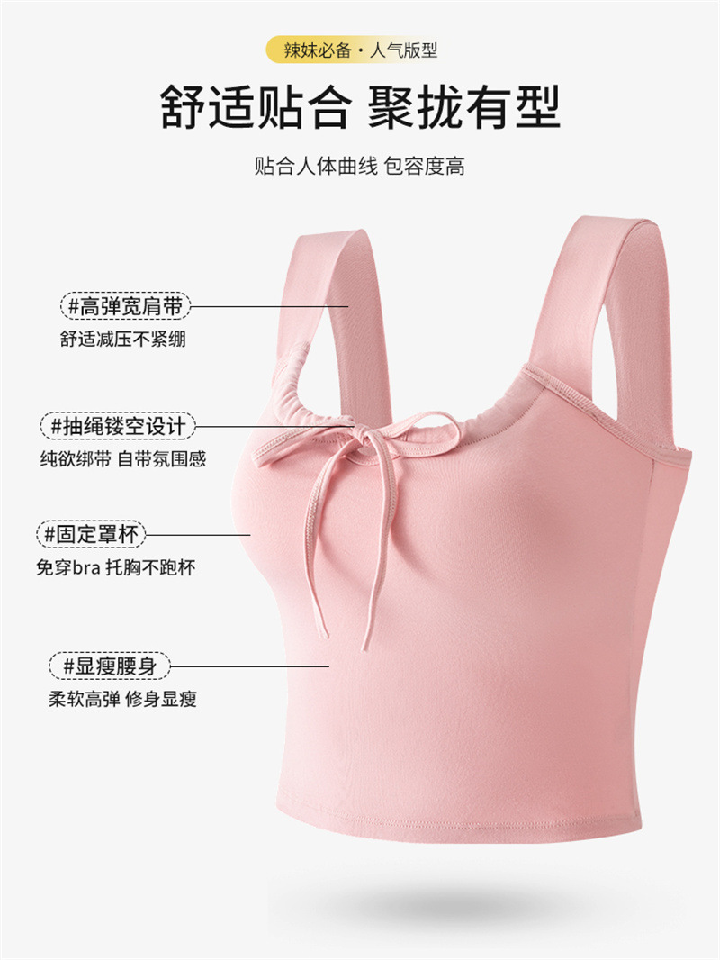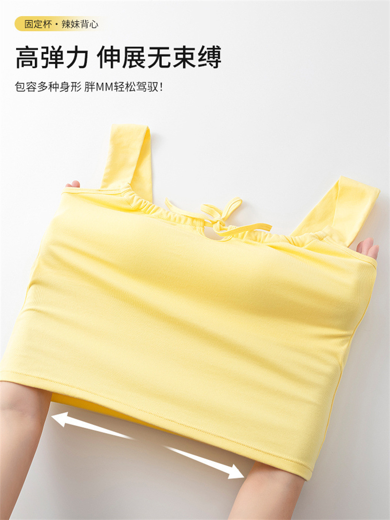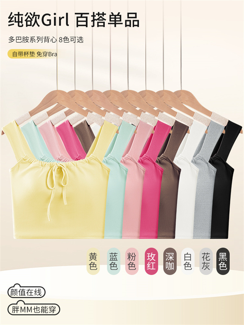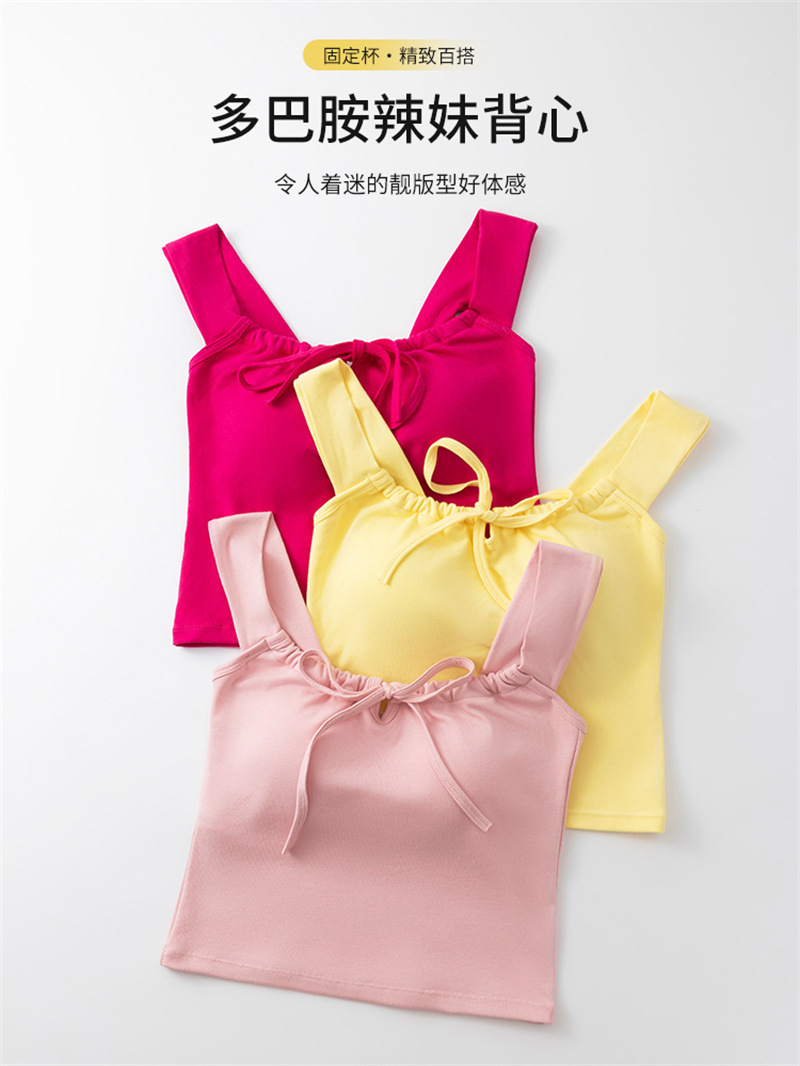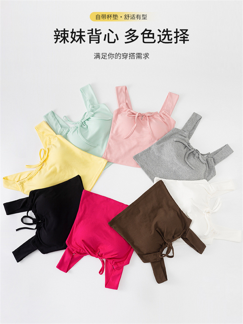 #1001 새로운 도파민 소녀 카미 솔 조끼 여성 순수 뷰티 스트랩 가슴 패드 세트 기본 탑스토어 가기