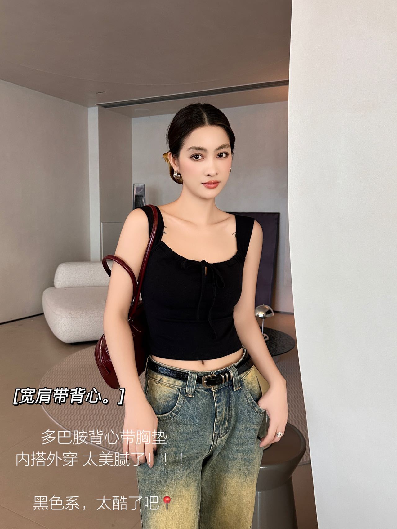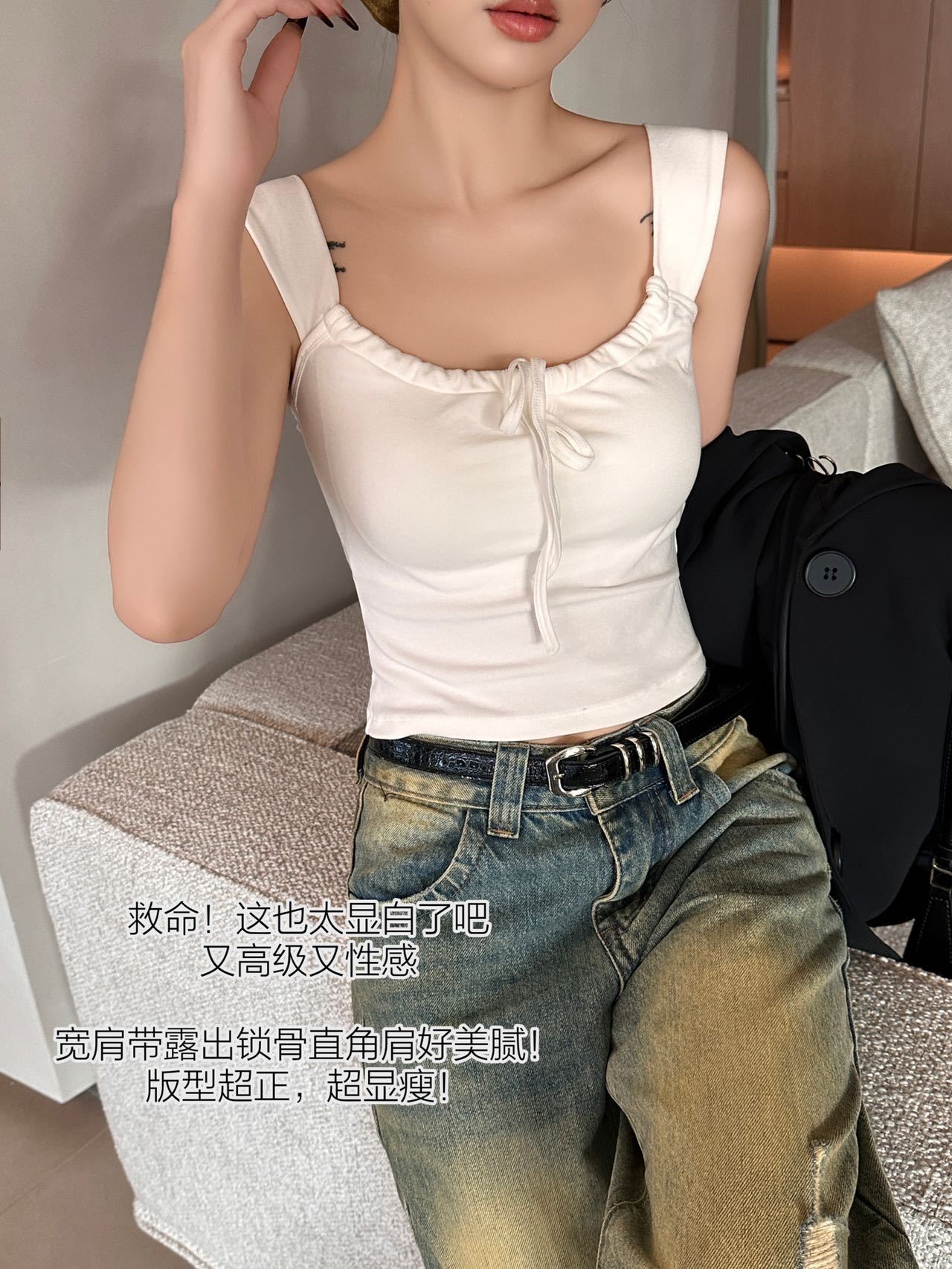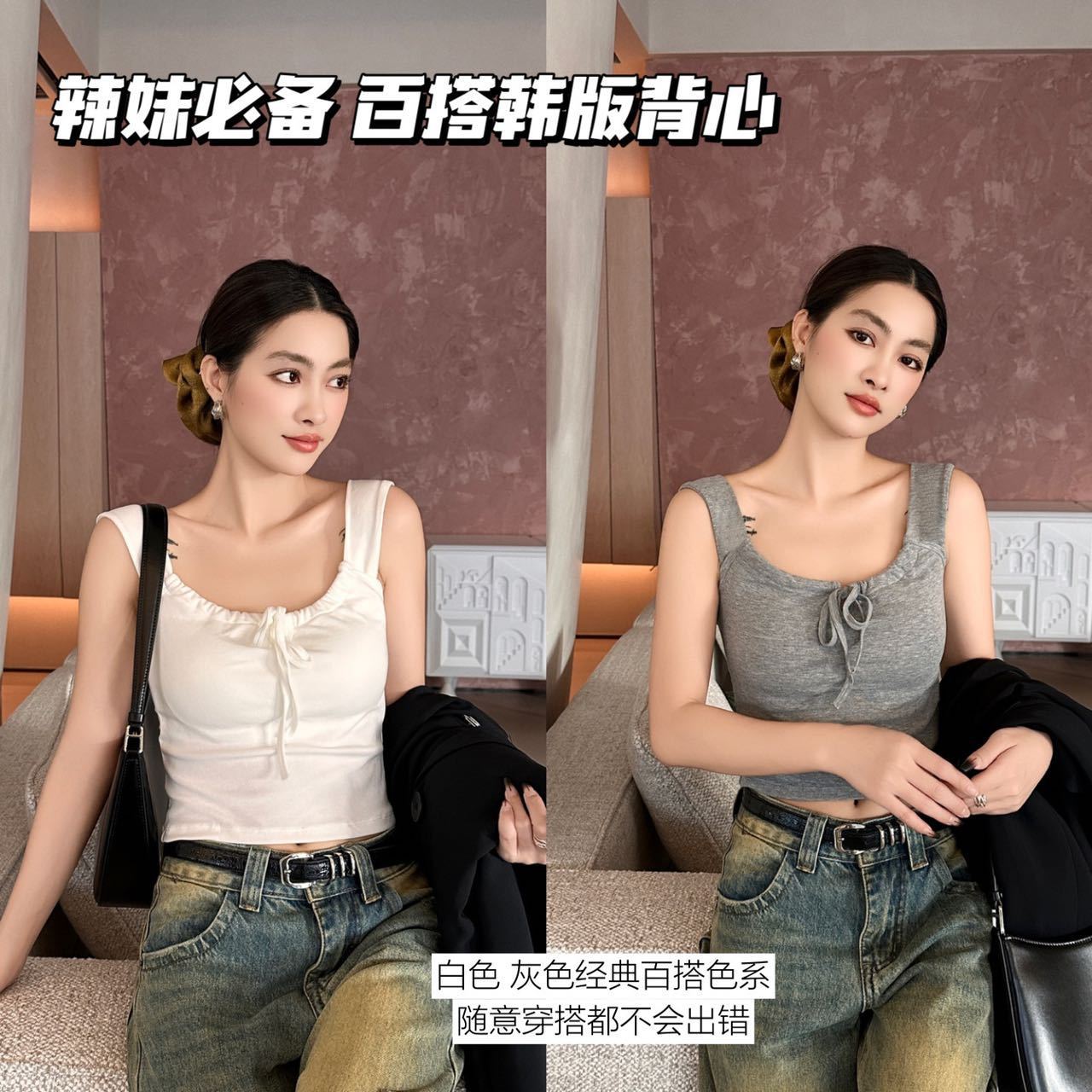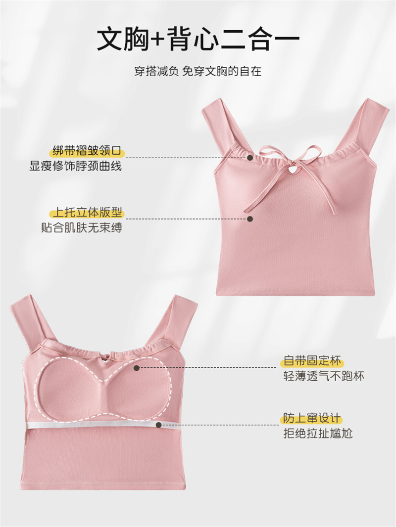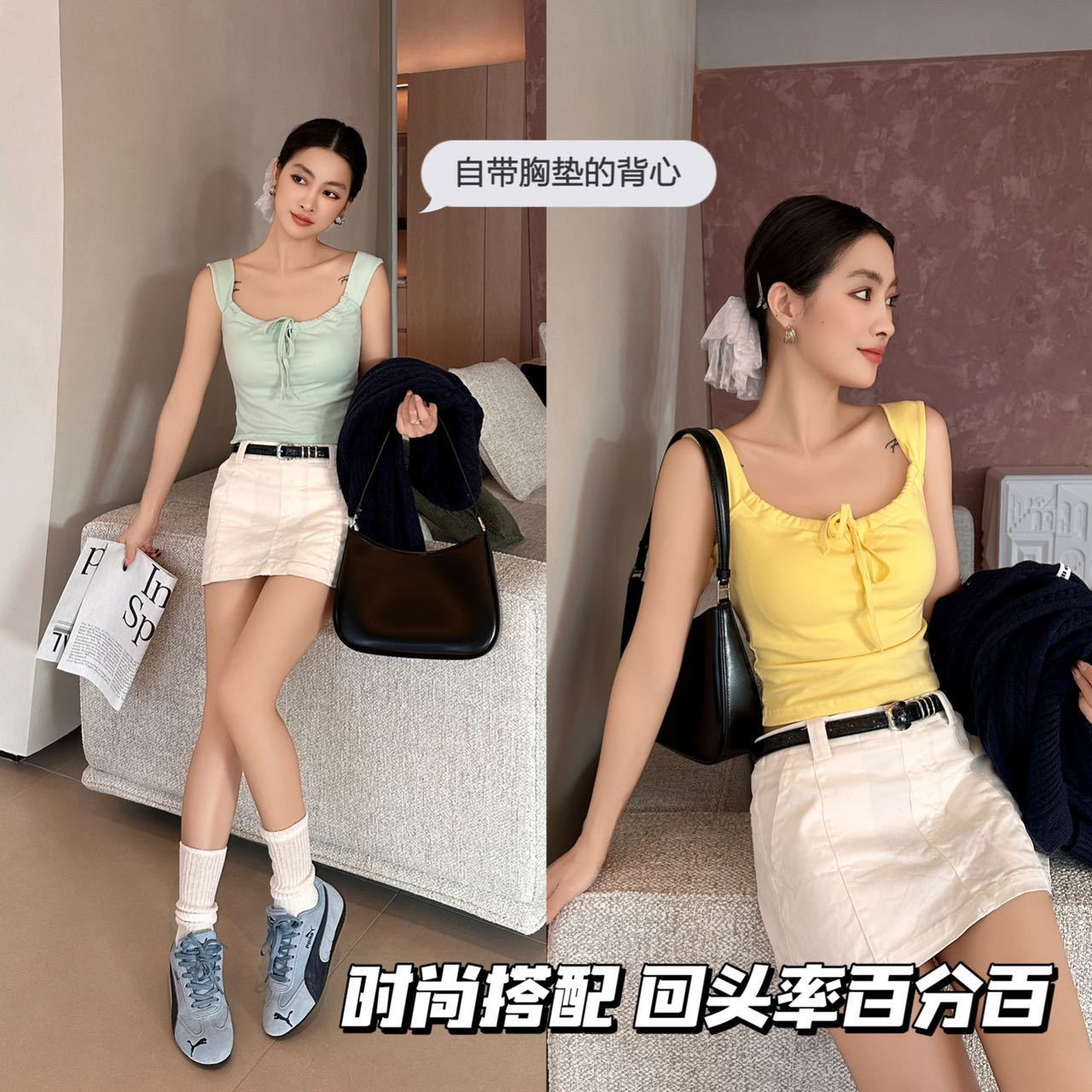 #1001 새로운 도파민 소녀 카미 솔 조끼 여성 순수 뷰티 스트랩 가슴 패드 세트 기본 탑스토어 가기
