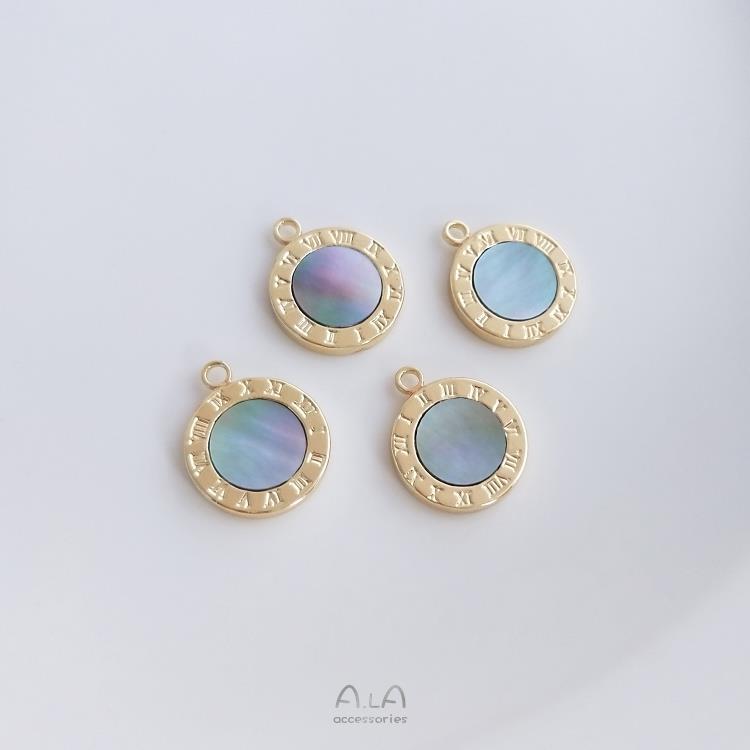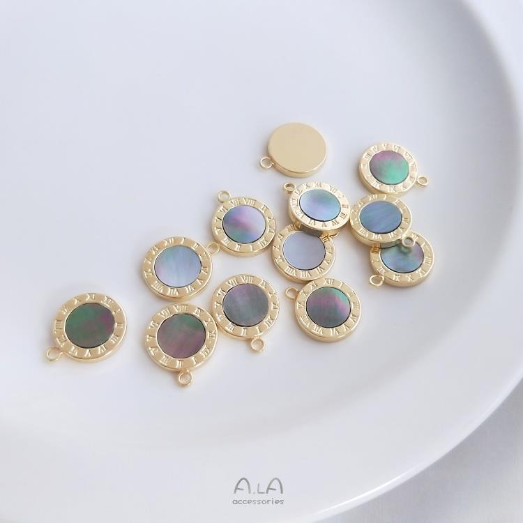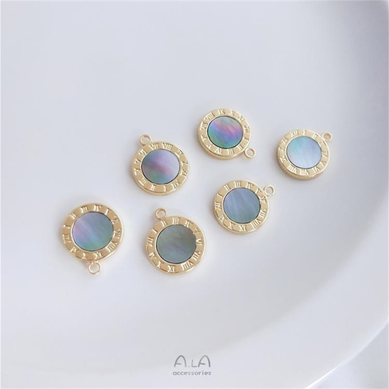 천연 회색 자개 14K 금으로 채워진 로마 숫자 디스크 펜던트 DIY 팔찌 목걸이 쇄골 체인 펜던트스토어 가기